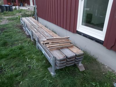 We had a heap of scaffold planks on the west side of the house. This heap is now in the way of the lawnmower. Another issue with the heap is the nettles growing around it. The third issue is that I have not laid the planks in a way that they stay dry, so they are rotting. I want the new location to solve most of these issues. It was here that I had my salad beds.