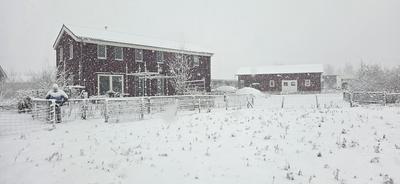 Today I have the day off, and I am in the barn plastering the ceiling with coarse mud. DW is working from home. That is good, as public transport is not entirely reliable given the current weather conditions.