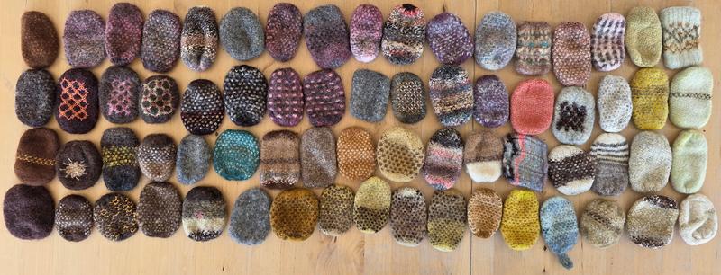 Really nice colors and shapes. She wants to fill each soap cover with wool and then sew the covers together to a pad you can sit on. It will be grand! We already had a go at sorting these soap covers. Could not find it. I think I even blogged about it.