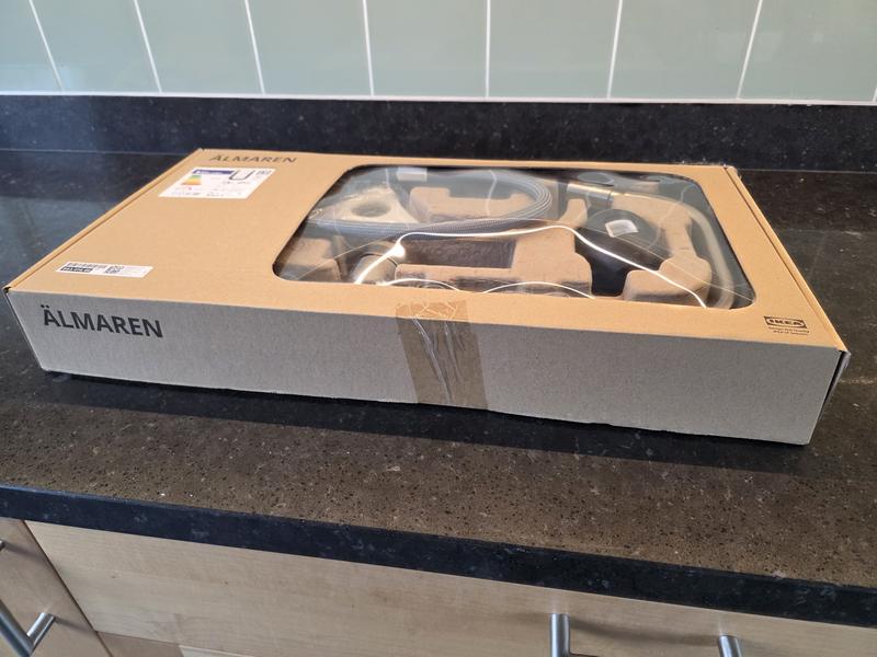 We bought it last week when we went to IKEA. We could keep it in the box, but why would we? This was the perfect moment to mount it. The tap reaches all corners of the sink. That is wonderful.