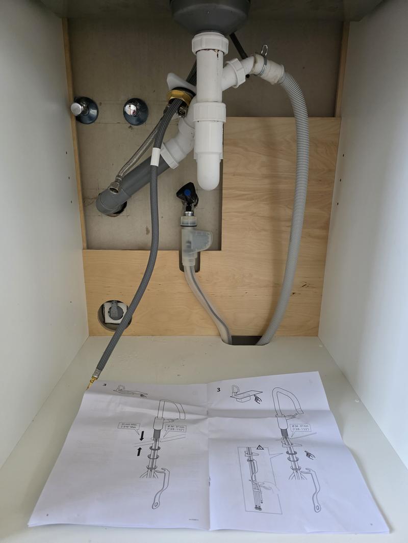 This was a gray morning. We had a slow morning. I decided to install the new kitchen tap.