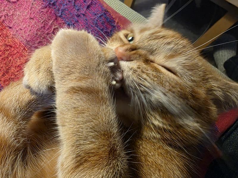 I am blogging with dark mode, with Merida next to me. She is purring loudly. I might close my eyes for a while and see if the photo chances are improving as the morning progresses. It is Tuesday morning, and I am already at 800 words. Can you keep up with my writing? Is it interesting what I am writing about? We will not know until I enable the feedback functionality. I am not ready for that yet. I have work to do on the blog system before I can turn feedback back on.