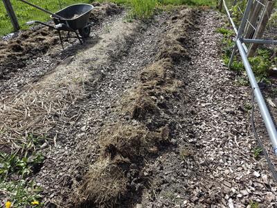 Today I had a day off. I worked on the garden, preparing the beds. Over the winter, there has been a lot of weed growth in the beds. The soil has become compact again. It is clay soil, so it is vital to add organic matter and sand to improve it, making it easier to weed and work with.