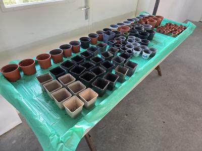 Then I collected the plastic pots we had collected over the years. Every time we bought a plant, we saved the cup the plant came in. There is a fortune of plants here. There must have been many failed plant projects, given how many cups we collected over the years.