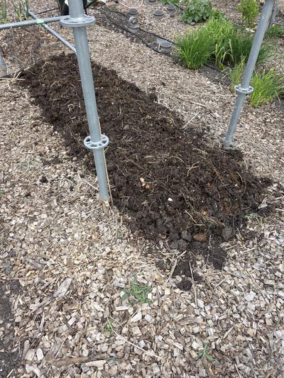 Today, it was sunny and beautiful. I moved 5 wheelbarrows of manure from under the rain roof to the garden.