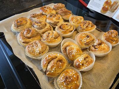 The recipe improvements worked really well. This time, I got confused about the yeast. Swedish traditional yeast comes in blocks of 50 grams. They call it fresh yeast. There is also something like dry yeast. The Swedish dry yeast package is mapped to the fresh yeast. The package clearly says 14 grams of dry yeast, which is equivalent to 50 grams of fresh yeast. We did not have any packages of dry yeast from the Netherlands, but I thought each package was 20 grams. I was confused. It turned out that the Dutch yeast comes in bags of 7 grams. Exactly right.