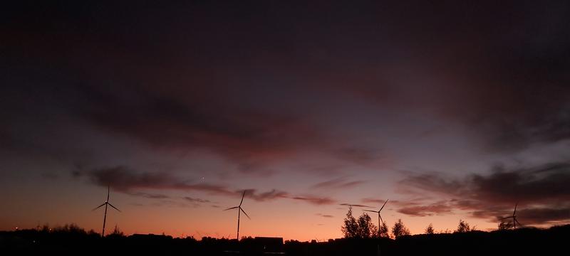 The forecast indicated a slight chance of rain, but it has held up so far. The time is 6:30 PM, and it's hard to believe that in a couple of weeks, there will be no sun at this time, but it will be pitch dark. Perhaps I can experiment and then come back here to check the status of the light. I recall another year when I tried to bike through the pitch-black forest, and somehow I can no longer do it.