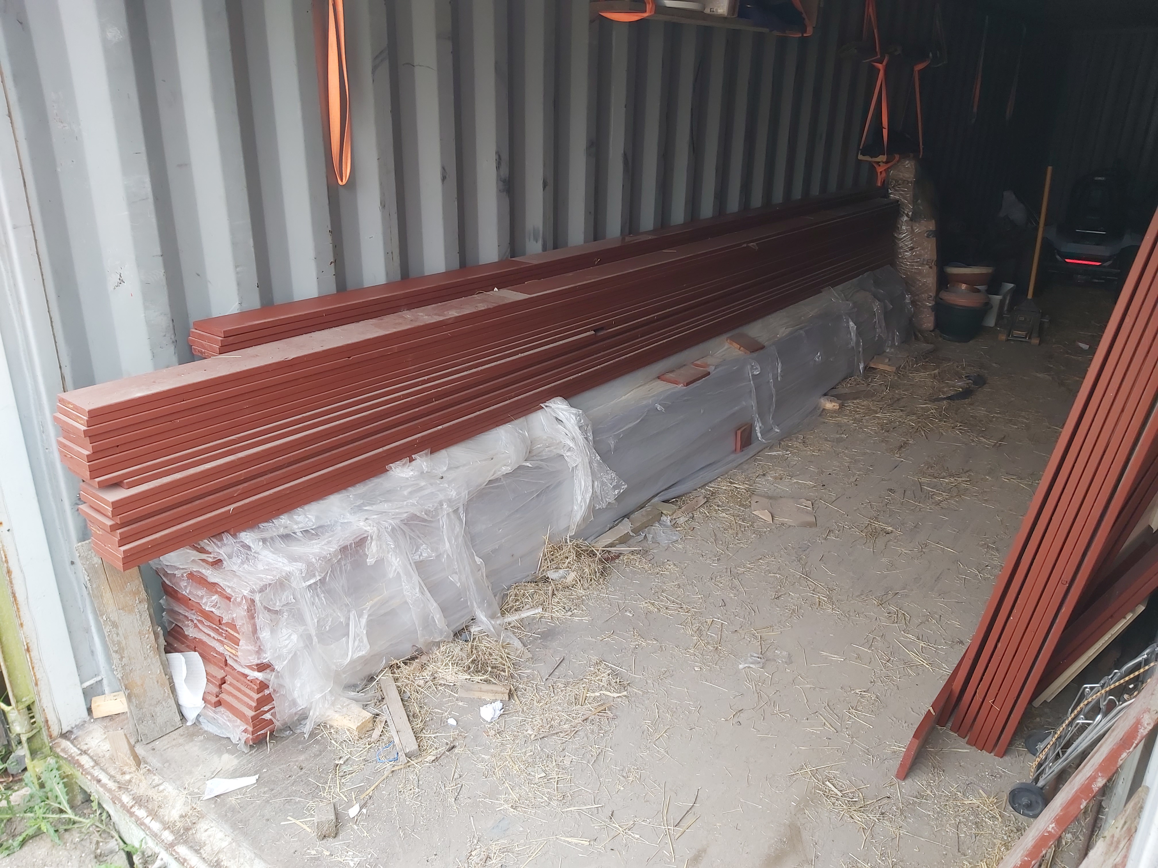 I remembered when we first moved the planks. The planks arrived on 10 July 2020. We got them delivered to the driveway. From there, we had to move them off the driveway. We loaded the sea container, but we also placed a heap outside it. The idea was that it would be easier to grab the planks outside the container. That was true, but the grabbing would not happen that quickly, so in the end, it was better to put all the planks into the container. On 30 July 2020, we began loading the last package of planks into the container. "It was a terrible decision to store the planks outside the container".