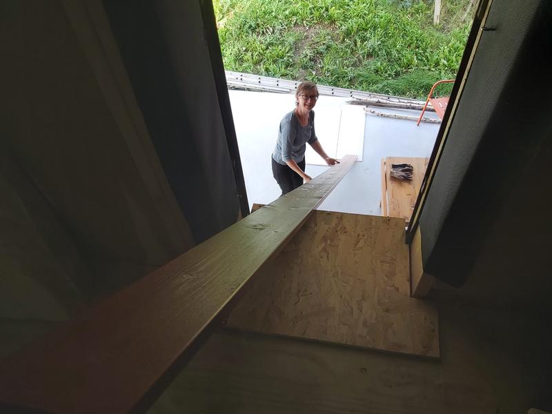 We had a stack of planks at the opening of the container. I had figured out that it would be possible to lean the planks against the opening of the hatch and then drag them into the attic.