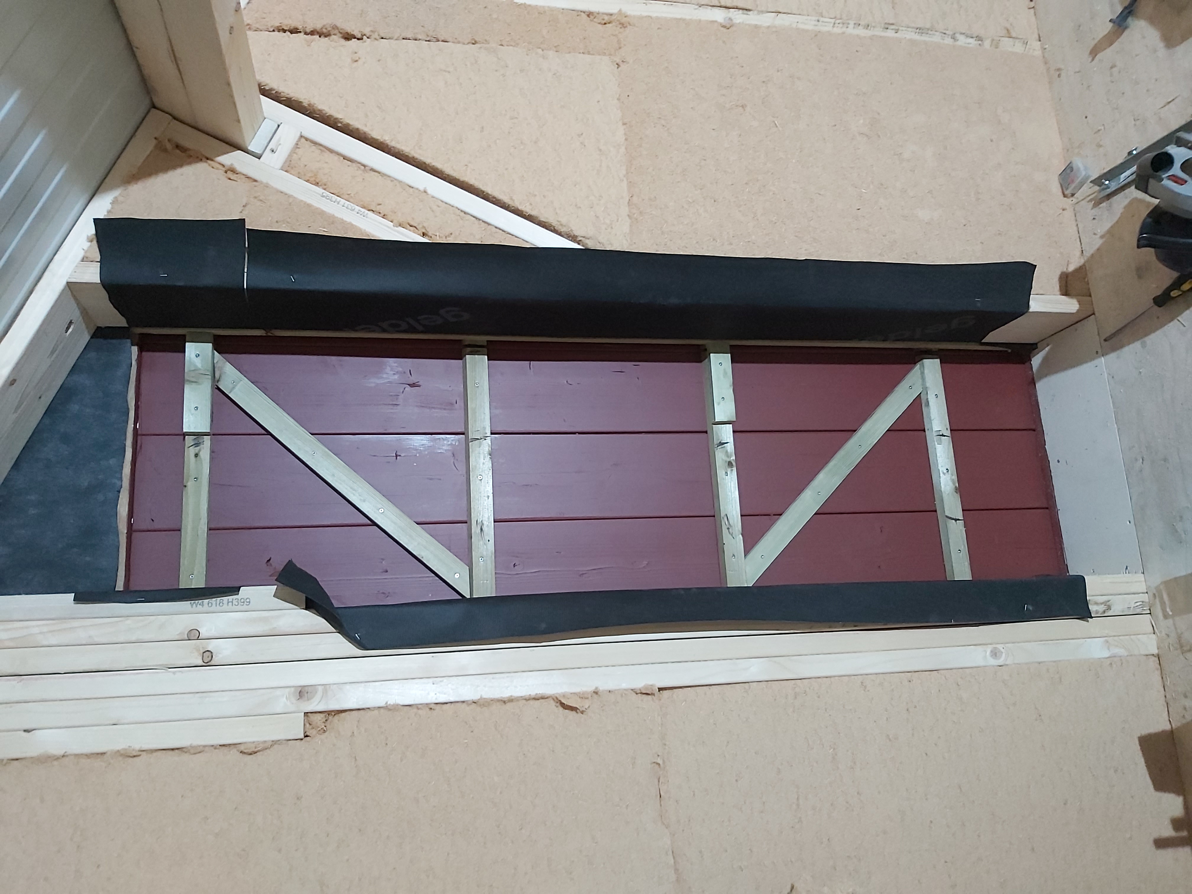 I worked on the hatch to the attic of the barn. The idea is to load the attic with planks from the sea container, and to make that easier, I made a hatch to the attic.