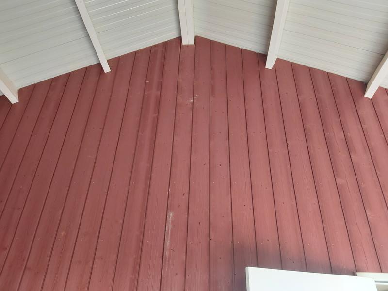 Then we put up the planks on the house, but at the front of the container, we still had some left. Perhaps we were too scrimp with mounting the planks. It worked out well; we got the house covered in planks, which is what matters.
