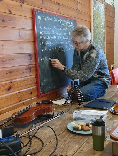 After breakfast, we continued to practice the tunes of Täpp Ida Almlöf. When it was time to record her tunes, I rigged the microphone as I had planned. I did not realize that the sound in the room was too loud for the setting. The recording had clipped in some places. It was not until I listened to the recording that I realized this mistake. I have to learn how to adjust the levels accordingly.