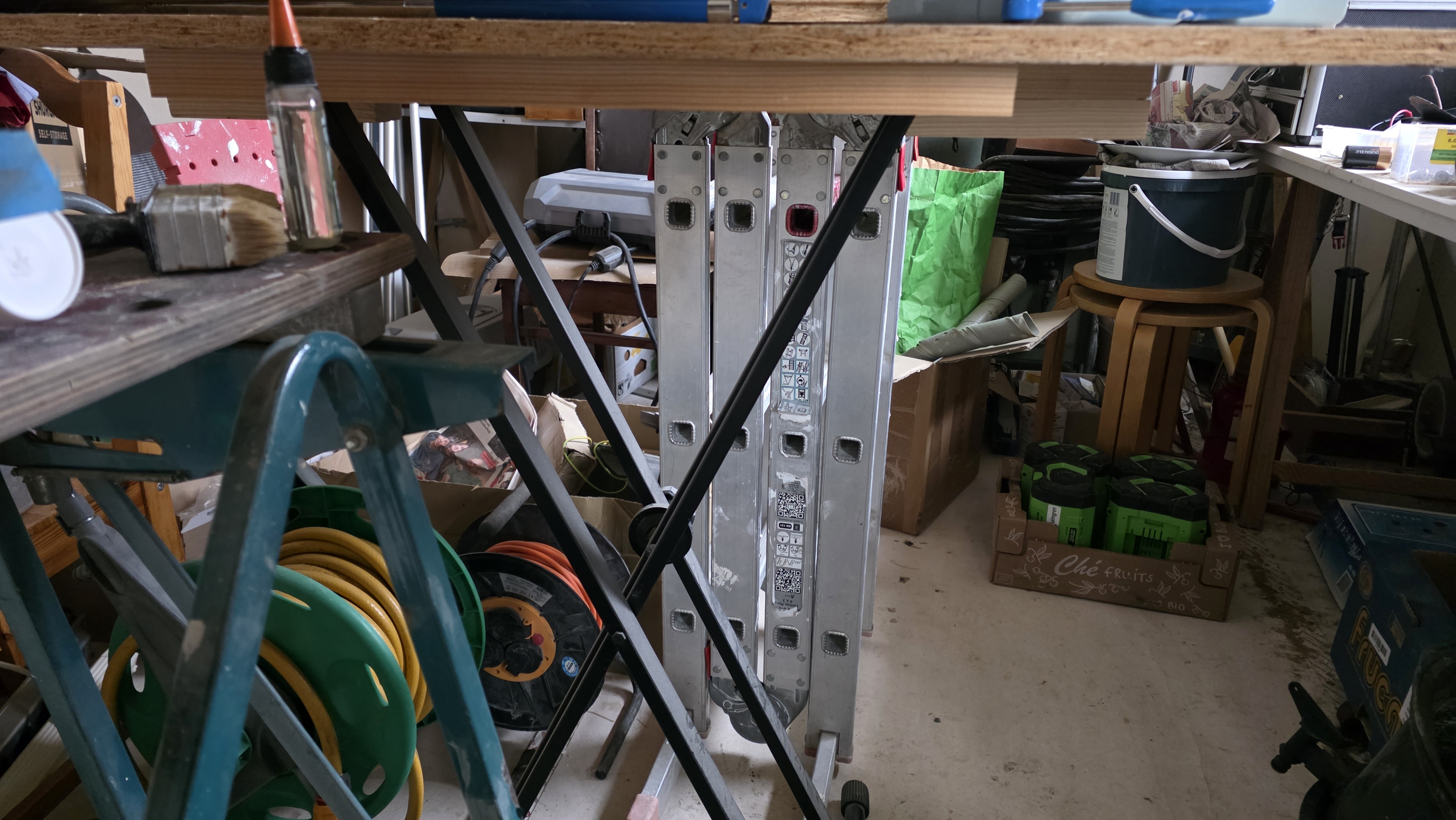 In the YouTube video I made, I asked: Should you plaster? That is a good question, but in my case, it’s obvious you should plaster something I didn’t talk about: using gypsum boards on the walls, why you should do that, because that might not be obvious. Well, the building is wooden. I’m planning to weld here, so I wanted to address fire safety. The way it looked when the house was delivered, you could see the wooden beams in the ceiling. There were plenty of cavities for a fire to start in the barn. So one thing that you’re doing regularly when you’re welding is grinding. The sparks from the angle grinder are flying off, and those little sparks could cause a fire.