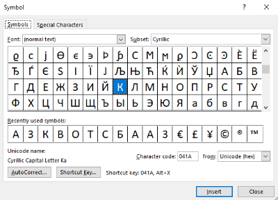 I don’t know any Russian. It made me feel insufficient that I would not know what his sign was saying, so I figured out a cheap way of finding out. In Microsoft Word, you got the insert symbol window. There I selected the Cyrillic subset. Then I looked up each character of his sign by looking at how the letters looked.