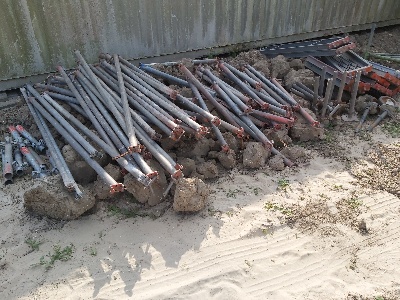 The main event of this day was the delivery of the scaffold. That was not such a picturesque moment. The company selling it arrived with a truck, and we unloaded it beside the trailer, and they left. It is heavy! Later in the evening, we moved substantial parts inside the container. There is no point stealing a part of a non-standard scaffold, and besides, thieves are reasonably lazy.