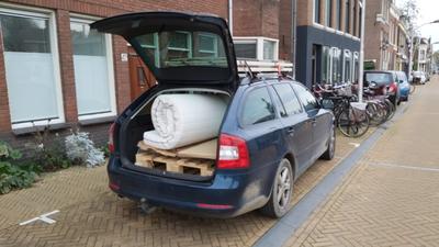 When that was done, I went to pick up a second-hand bed. I had a half-day off for this excursion. The weather was nice. You can recognize my car by the enormous amount of dirt on it. The dirt road has been incredibly dirty lately with the rain that has fallen and heavy traffic. It is pointless to wash the car because we are driving to the house so often, and then we use the dirt road, and it will stay like this for a long time. I don’t mind because this is part of the charm of this project.