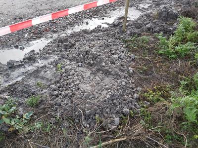 The barrier tape that I put up on 1 April was broken, which did not help the situation much. It happened when the street verge was dug out to install a data cable for the wastewater company that some of our neighbors are connected to. The wastewater company broke the barrier tape and left junk along our side of the road. I had been considering restoring the barrier tape because it appears as if our garden is used to dump stuff when we are not present to defend our property. Now it was time for the dirt road to be restored, and the company, Jelle Rigter Grondverzet, decided to dump dirt in our gardens on top of the hypericum plants that I put so much energy in. I don’t understand how anyone can get in their head to dump clay and mud in people’s gardens? Is the work done without supervision? Is Jelle Rigter letting out his kids without supervision to do the work for him? The people working with the machines seemed so young. Where is the manager?
