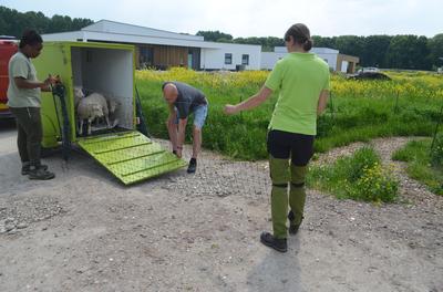 Unloading was done really quickly, actually. The sheep got acquainted with the place and started eating with a smacking sound. They were happier when we were around, but they relax and lie down and eat if we are gone.
