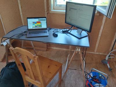 I sat in the hobby room on the first floor and my wife in the living room. We got Internet, telephone, electricity, and a coffee machine so what more do you need to carry out work?