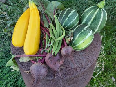My wife made courgette pankakes of the courgette. That was delicious. The beet became a beet salad.