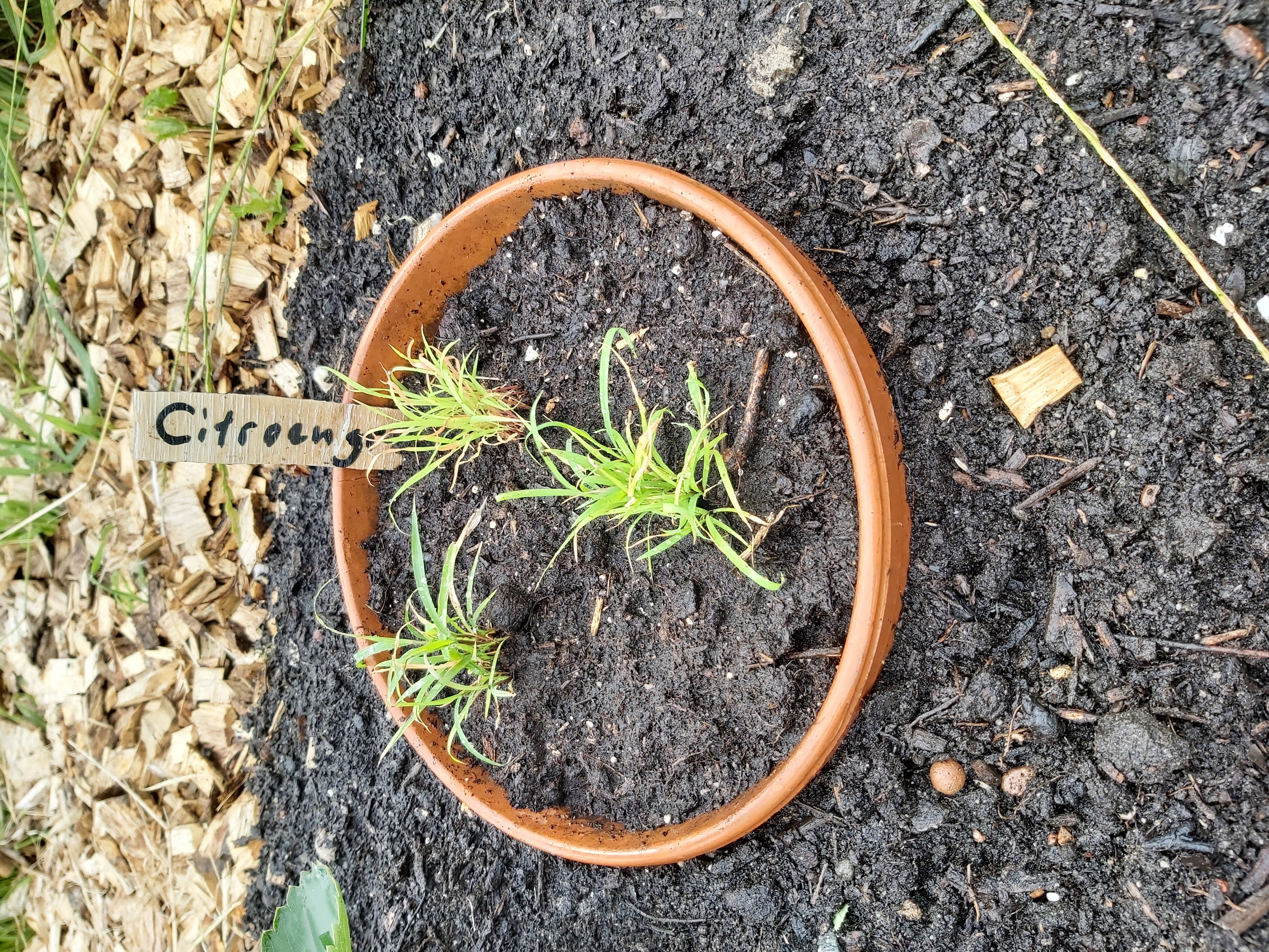 DW had sowed East Indian Lemon Grass (Cymbopogon flexuosus). Now I gave it a more permanent place in the same bed as we planted strawberries. I also planted a strawberry plant we got as a gift from neighbors last weekend.