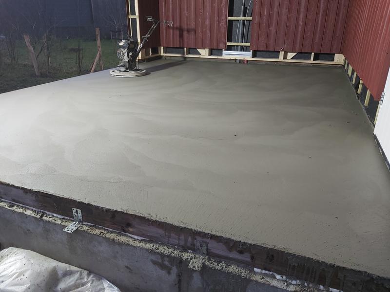 The pump operator left around 10 AM. Then nothing happened for three hours. The polishing specialist sat in his van. After three hours, it was possible to stand on the concrete, but it was not firm yet. He placed a polishing machine on the floor. One for the workshop and one for the canopy. Then, a tedious wait for the concrete to get firmer started, followed by a round of polishing. Then wait again. Then polish again. This went on and on.