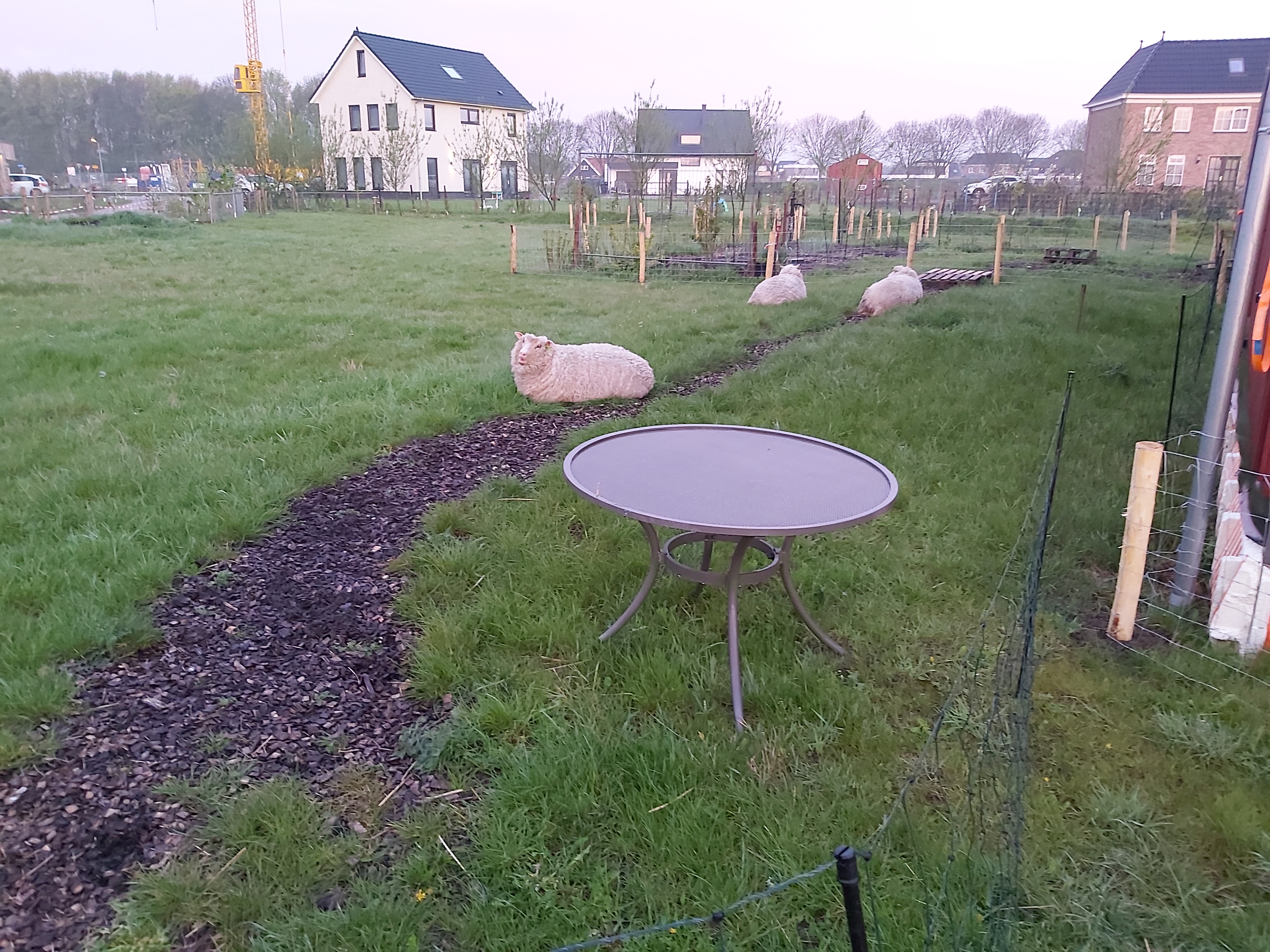 Today I worked from the office the whole day. DW worked from home. After work, we started to move the sheep fence area. They still got access to the rain roof and hey holder but changed the net to be around the rain roof and then let them go on the north, west, and south side of the house.