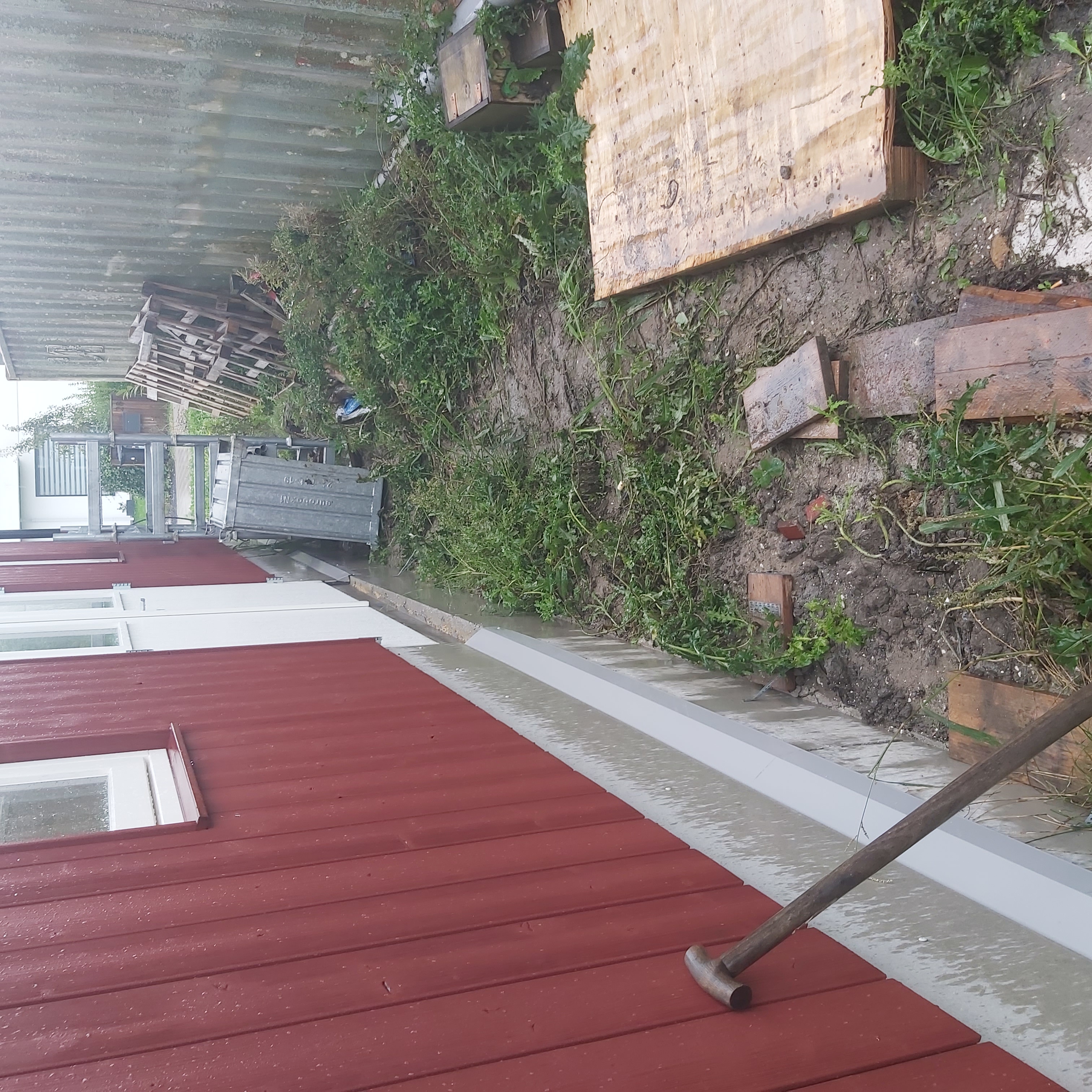 The first thing I did this morning was to clear the area in front of the barn doors. I will build a platform there so that I can drive the lawn mower into the barn. With that, we can get rid of the sea container.