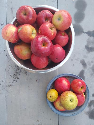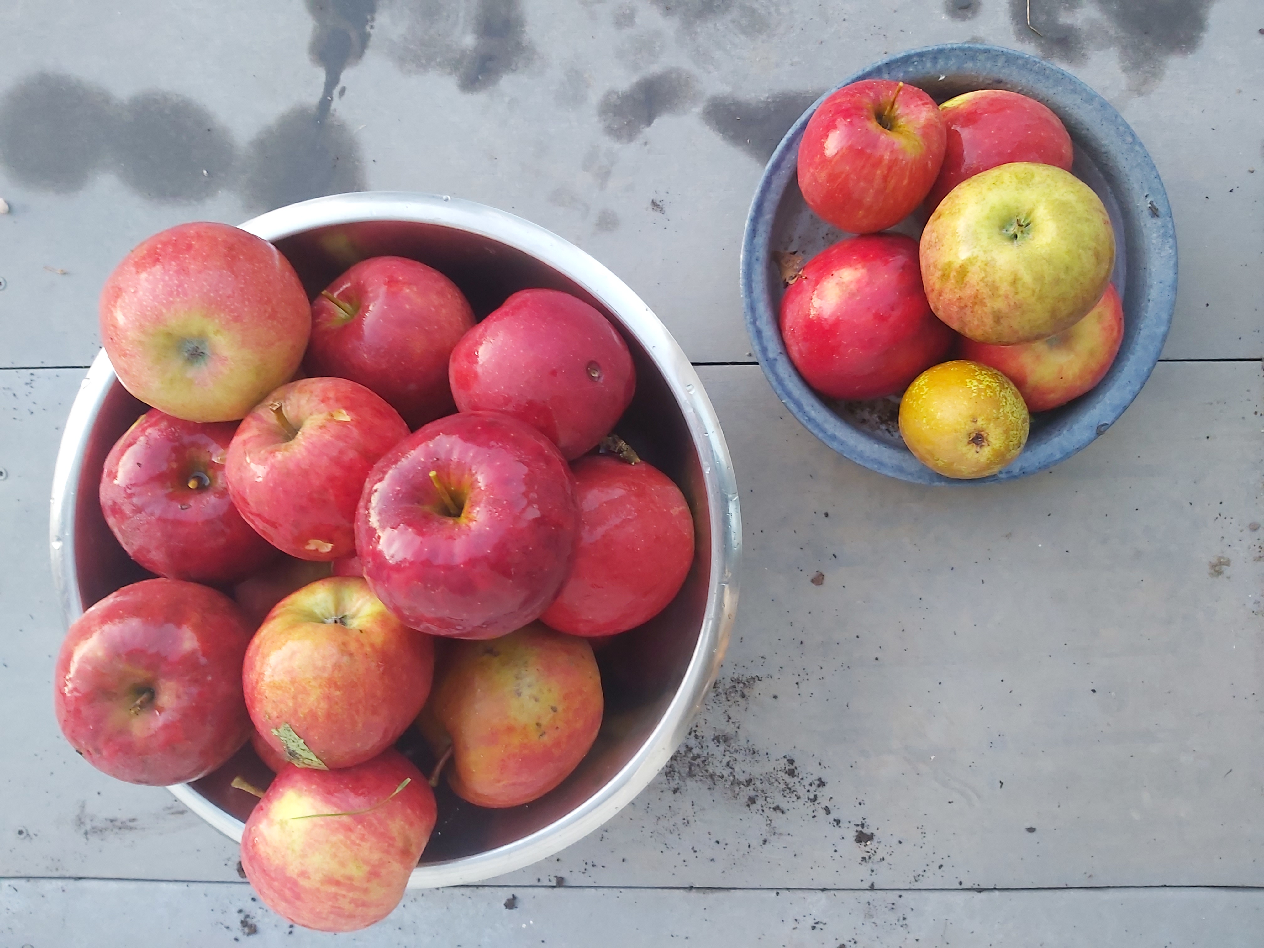 It was a beautiful autumn day. The sun was shining, and there was no wind at all. I picked pears and apples in the garden to use for our regular smoothie. I worked from home in the morning, and DW had a day off. This day, she did leisurely things.