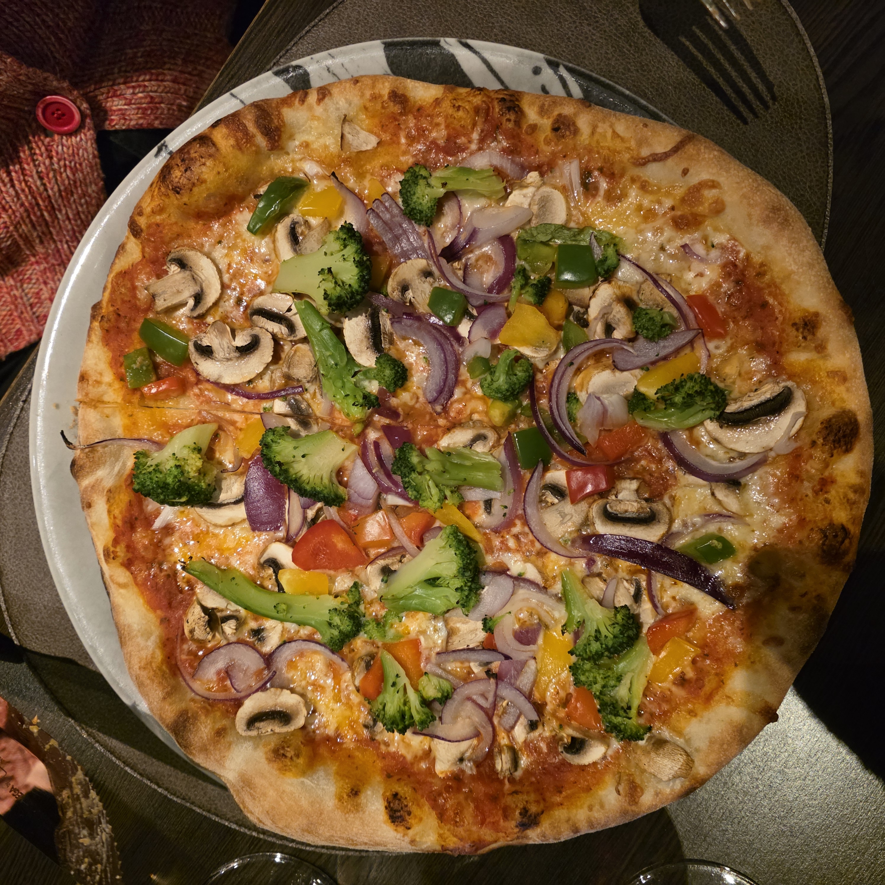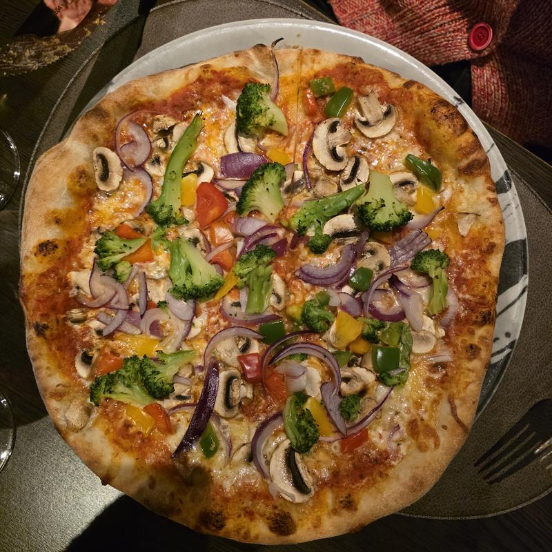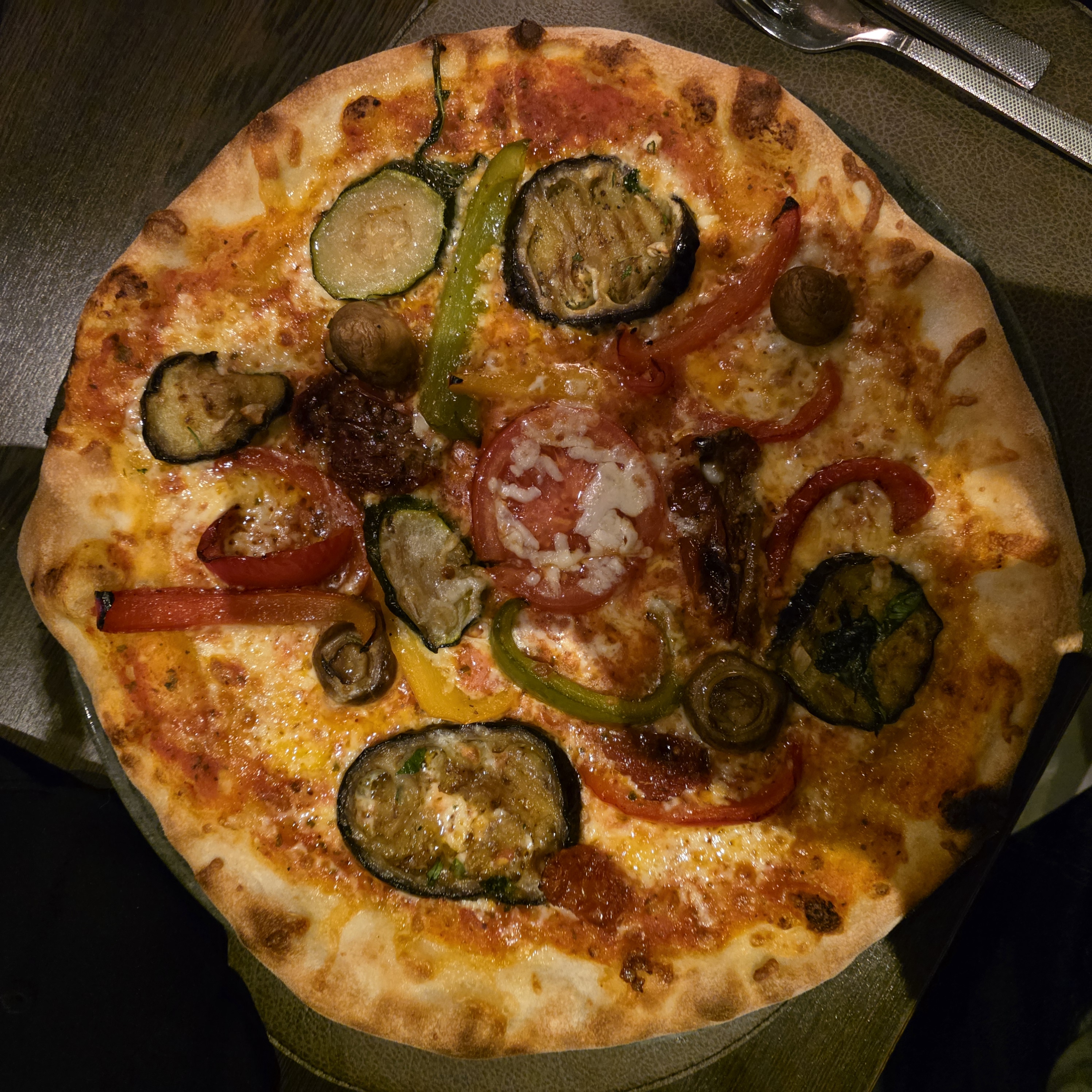 DW and I had two vegetarian pizzas: a vegetable pizza and a Misto pizza. The Misto pizza was really nice! WB had a steak, and DD had a carbonara. She was the least happy at the meal. The wine at this restaurant was not at the same level as the wine of the Old School hotel in Siek, which was excellent. I think the wine from the Old School in Siek was so good that we would book a stay there to experience it again.