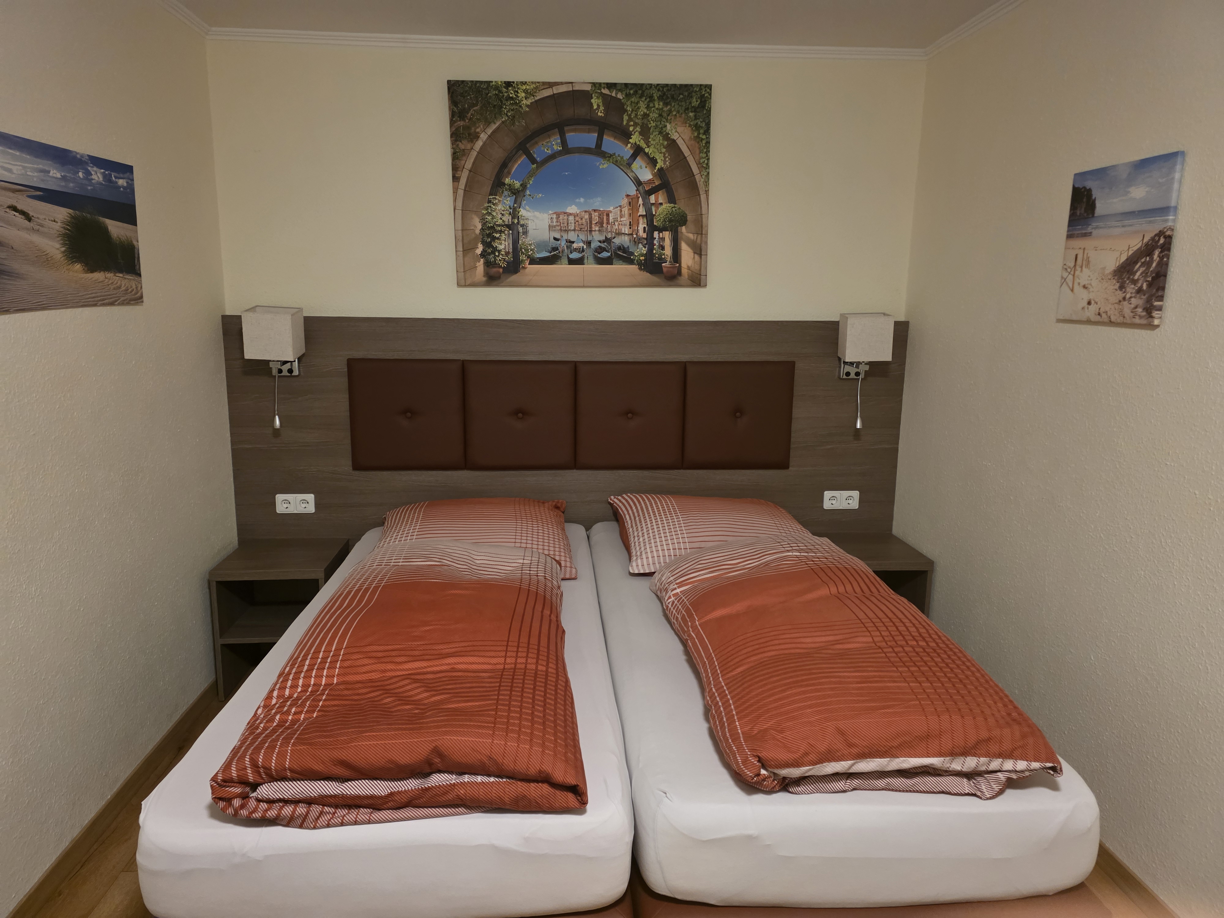 We switched drivers. WB could rest, and I went behind the steering wheel. I drove to a city right across the border to Germany. Here, DW had selected a hotel with breakfast. It was actually more like a motel. That is not such a well-known concept in Europe. Alas, we could not park outside our room as they do in American movies. There was a central parking. But each room had its own front door. You arrived directly in the room from that door. It didn't feel normal to have a room like this. I think I had preferred a regular hotel, actually. But here we were, and we could stay here, so that was fine. I suppose.