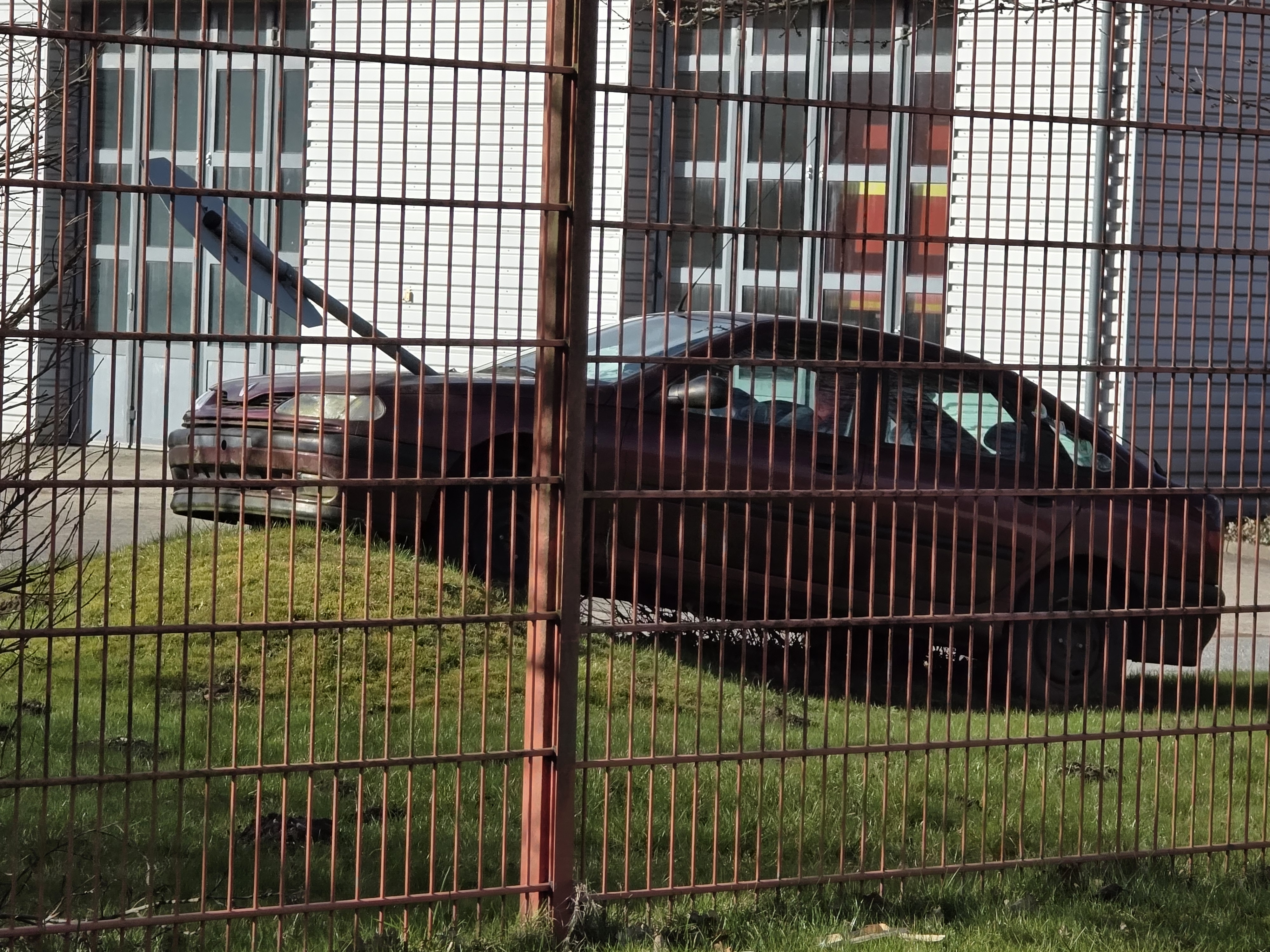 We checked out, and WB was the first to drive. It looked like it was going to be a sunny day. When we came out of the industrial area, I noticed an art piece of a car with a traffic sign through the bonnet. I suppose this is fine art in this region of Germany.