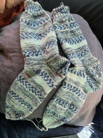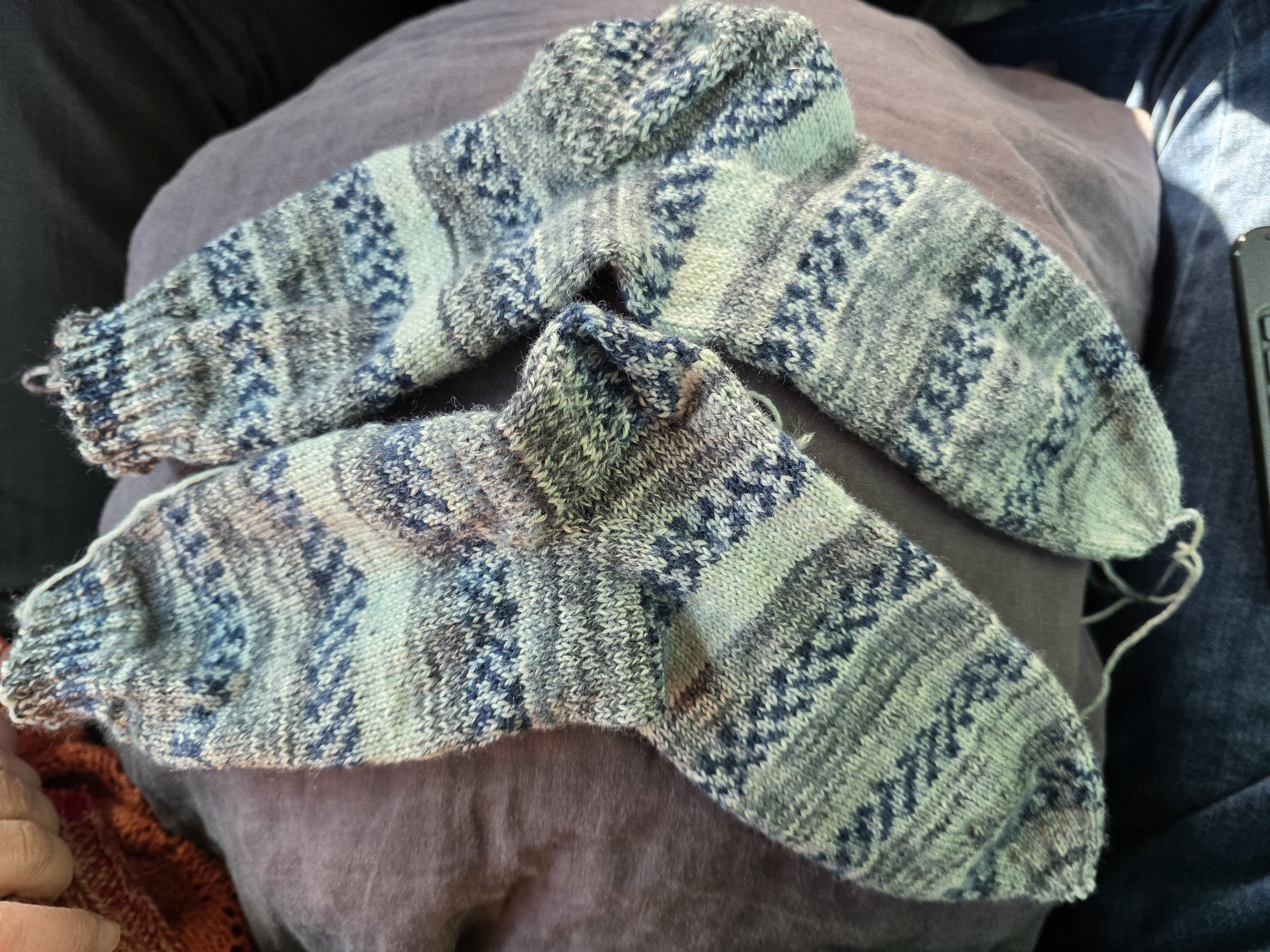 I blogged, and DW knitted on the socks she has been working on during this holiday. The socks are made from an art yarn with various patterns throughout. She finished the socks before we reached Hamburg.