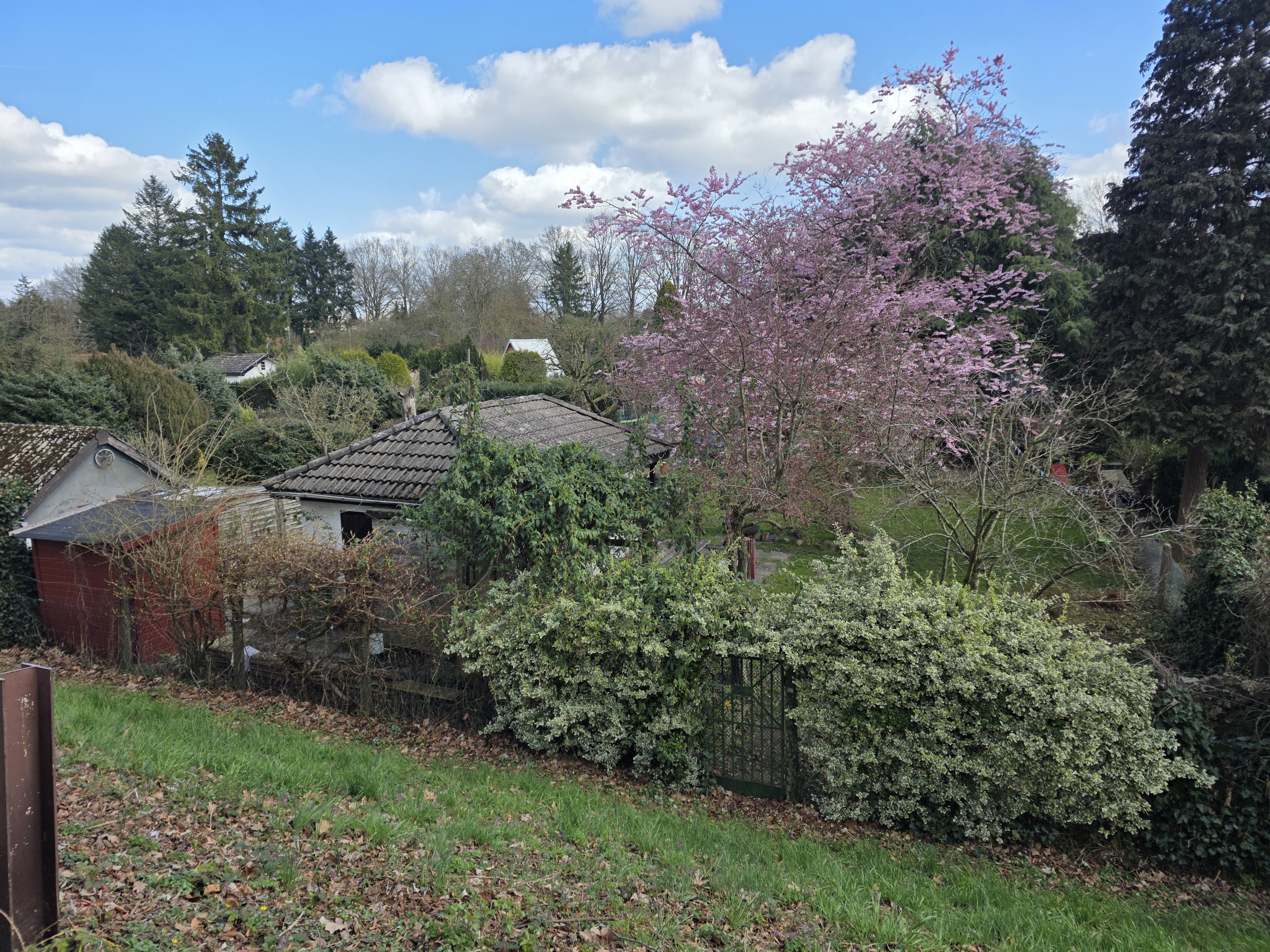 After breakfast, we started the new gardening season. In November last year, when we sold the sea container, the buyer had a drone fly over the container to take photos of the situation. He also took a photo of our garden, and I used it to make a diagram of the garden and all the beds. So this morning, we decided on generic names for the beds so that we can now make a diagram of our garden.