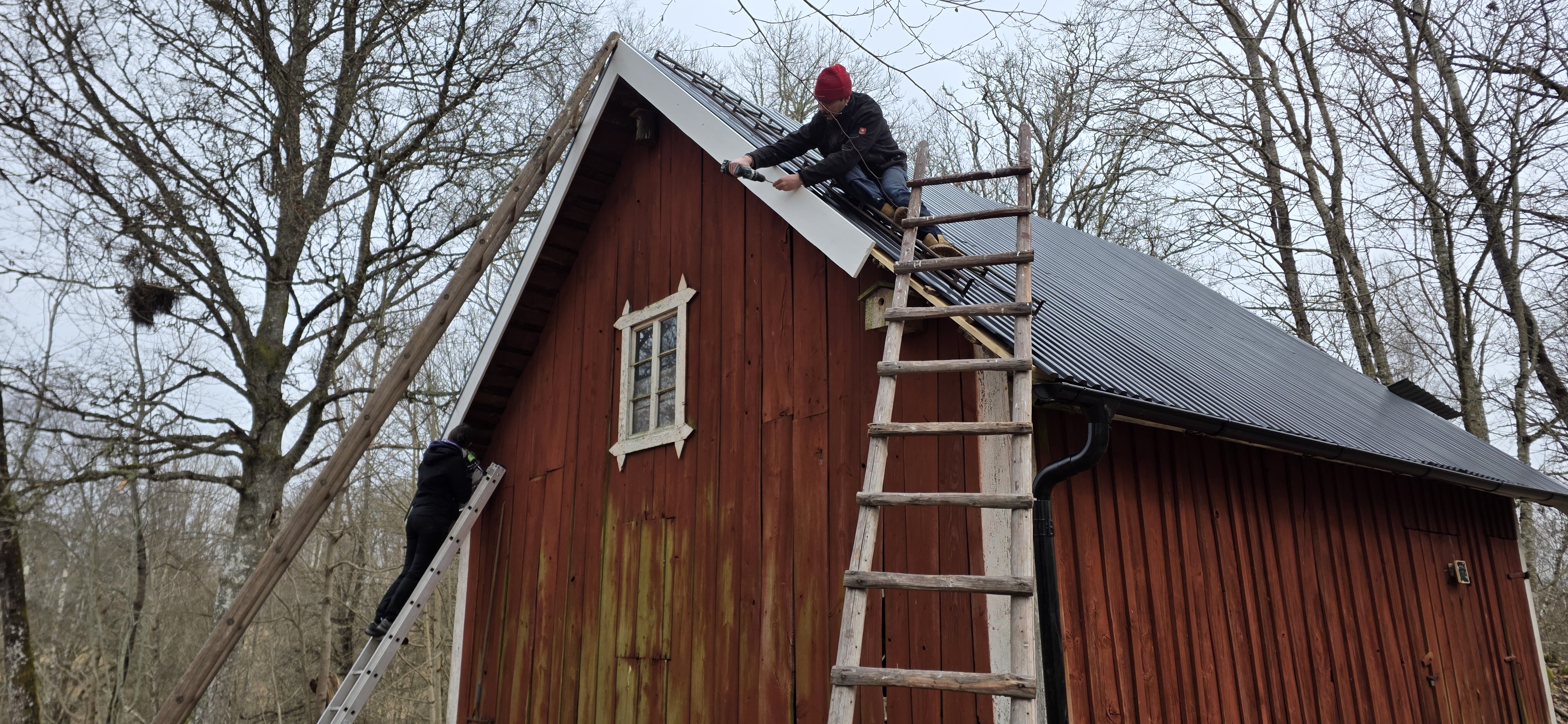 In the evening, we had festive food in the salon of the cottage. DW had made a quiche with broccoli and Camembert. We were all very happy with the roof's result. During the dinner, we talked about the plans for tomorrow. WB and DD planned to go to Isaberg, Sweden's southernmost ski resort. Both WB and DD are good snowboarders, but they had not had any good opportunities to go to a resort this winter, so it was good that the roof was finished, that there was spare time, and, not least, that Isaberg is just 40 minutes away.