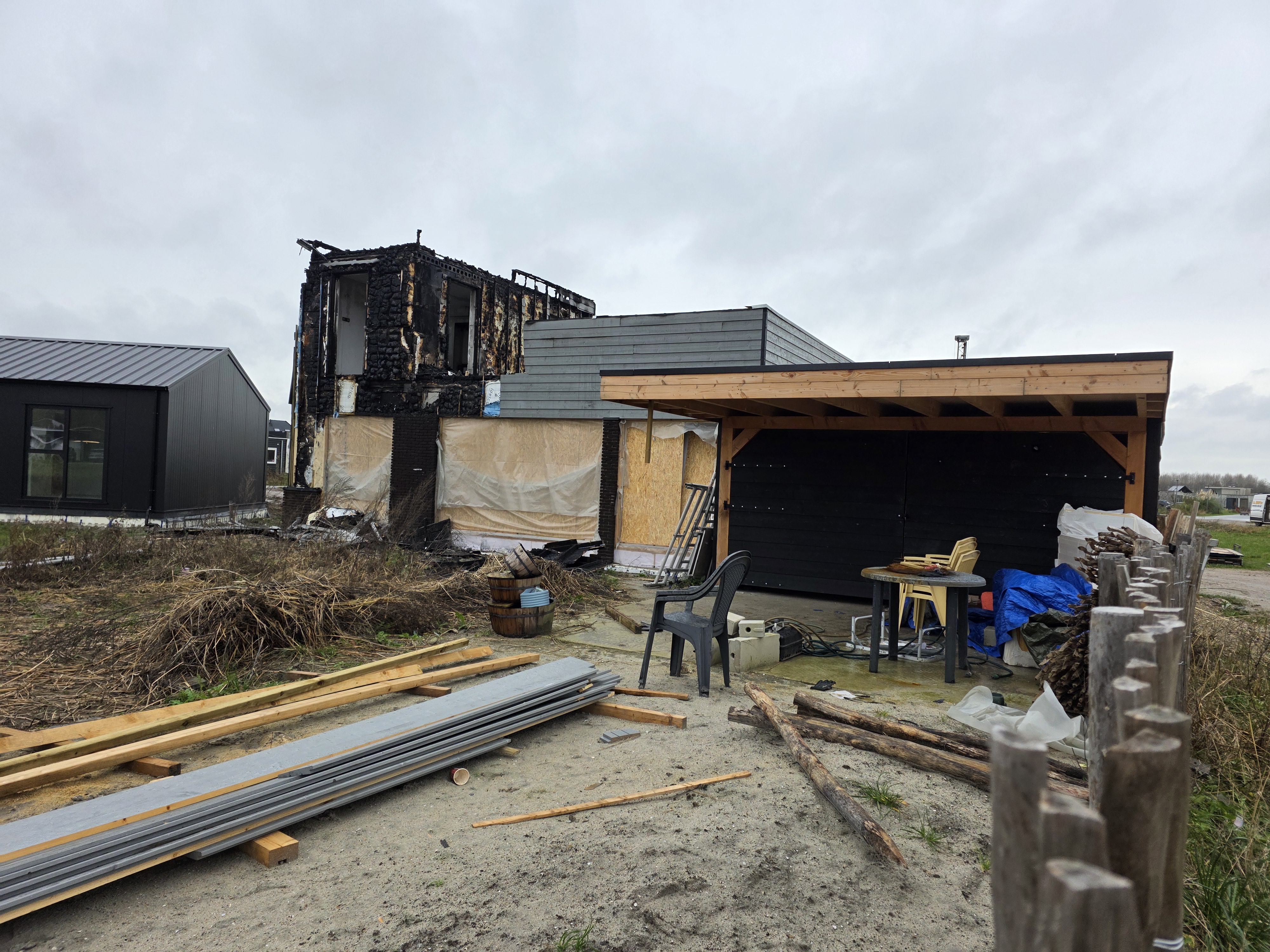 We had a lunch walk. I took two pictures of the house that burned. When I look at it up close, I notice the insulation looks flammable! The insulation is not made of wood fibre; it is difficult to say.