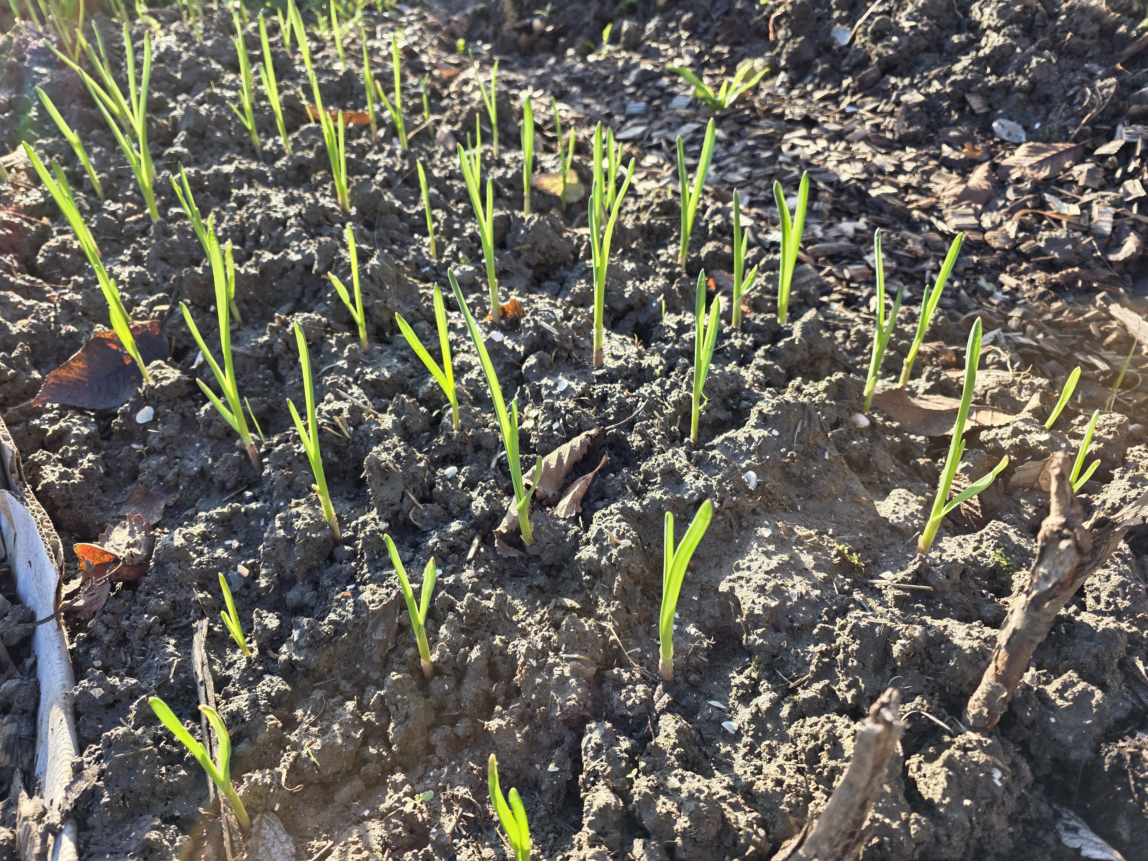Everything was beautiful. Even the garlic that is coming up is beautiful in the sun!