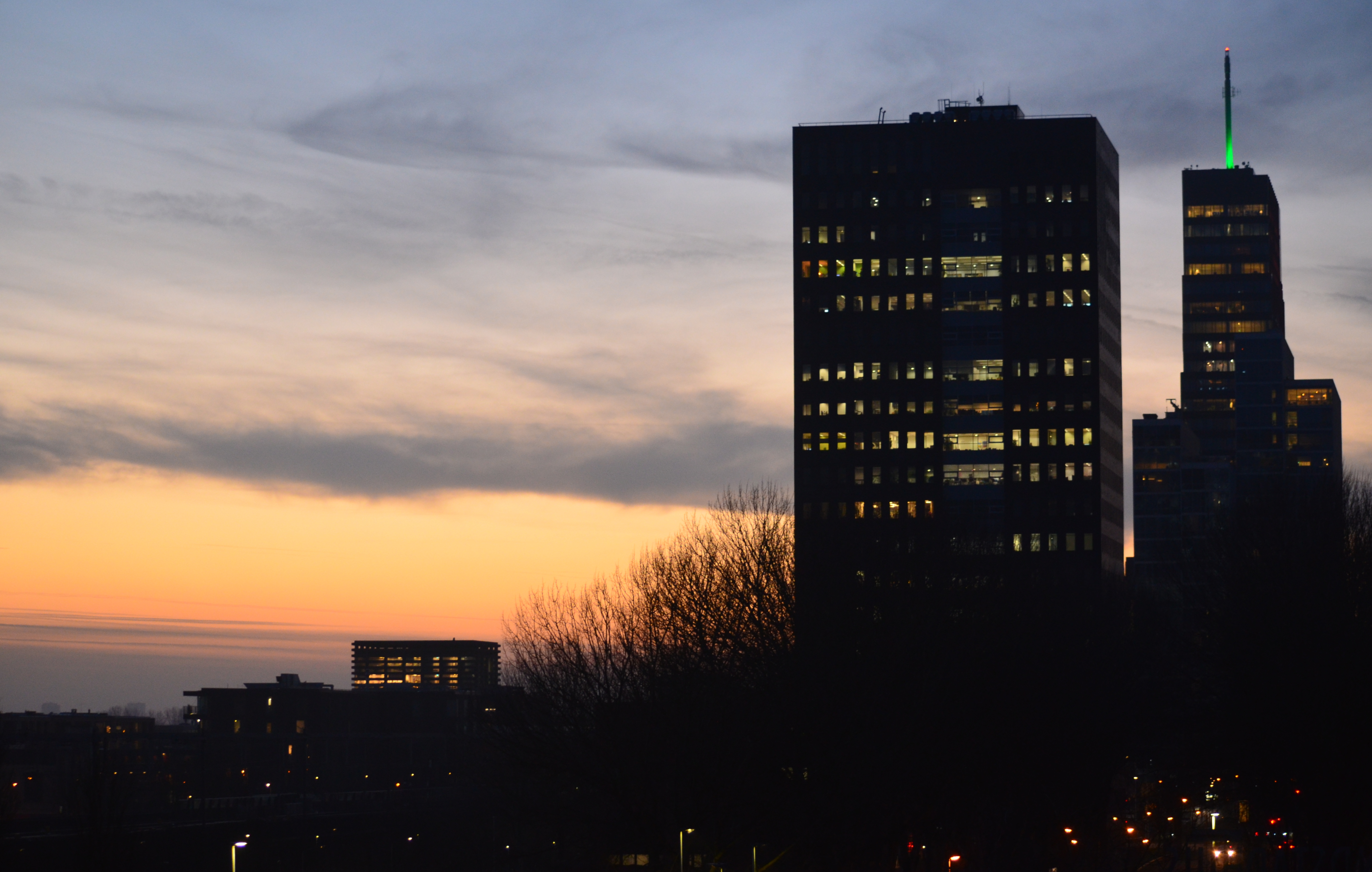 The skyscraper in the city centre tries to be fancy, with a green-lit mast atop the building. Should I have a green lit mast on our house? I do think about setting up traditional Swedish wood ornaments on the house, but they should be white. On the way home, I picked up a package at a package automat. It is a device for delivering packages. So you get the code sent to you by mail or another method, then go to this place. There’s a Screen where you enter the code, press a button, and a door opens, and you can take out the package. The package was a yule package from DW's employer.