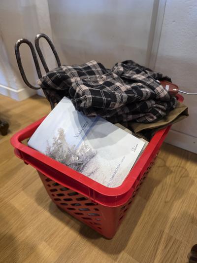 We arrived on time for the shop's opening. It was already full. I guided DD and WB to the shop's cellar, where the tools were kept. WB was interested in finding some vintage tools, but found none. DD was looking for vintage film camera gear. I found a large pair of metal pliers for adjusting firewood. That can be handy in the cottage. DW found many items, and our basket was full.