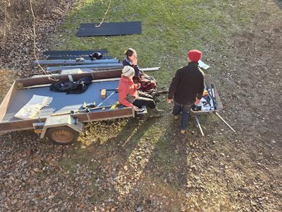 When all the tiles were on the ground, all four of us brought a couple of trailers to the barn. Here, the tiles will not freeze into pieces.