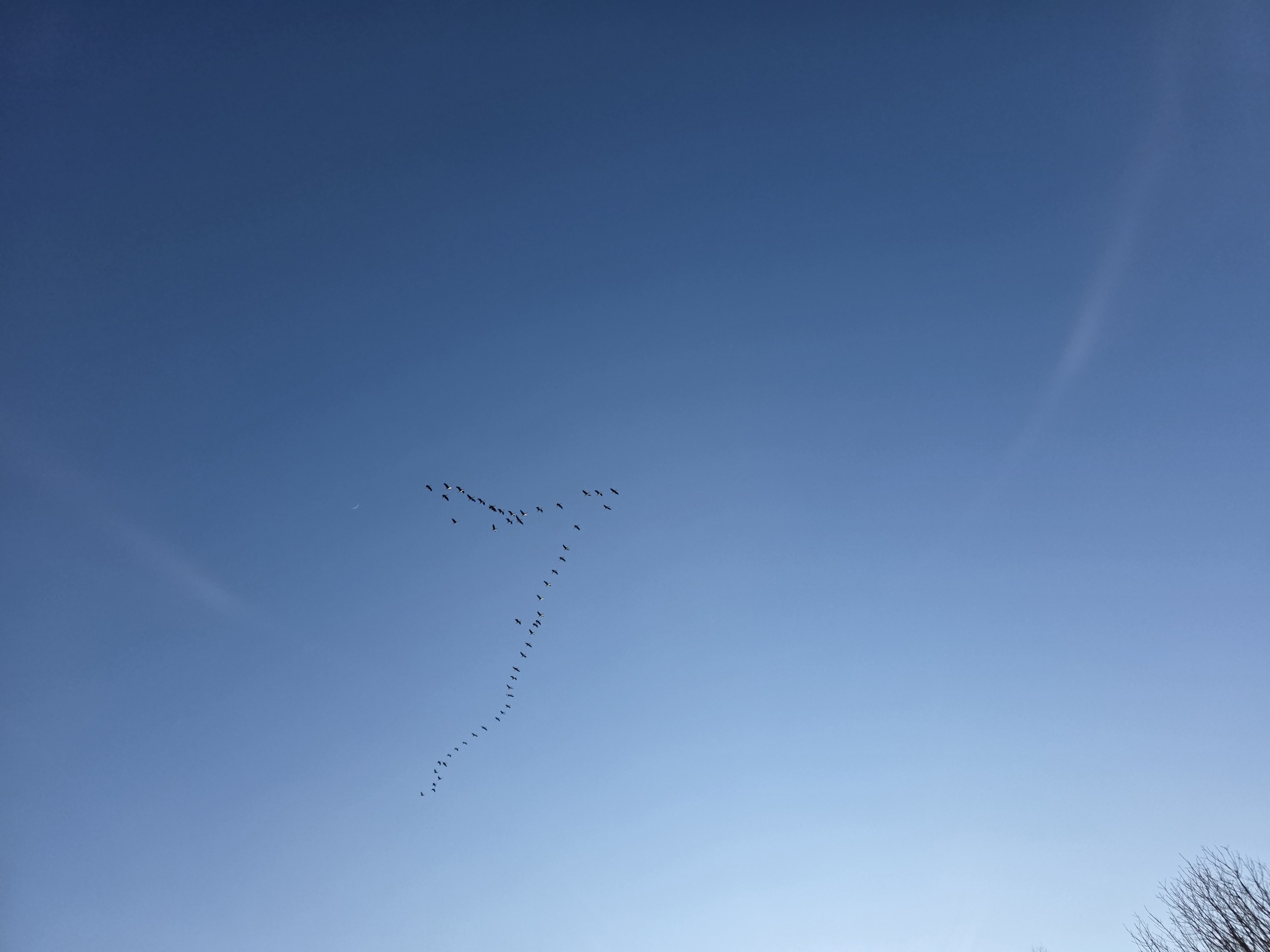 Above our heads, a V-shaped formation of crane birds came flying over. There were 42 crane birds in this formation.