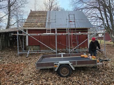 | Replacing the roof of the wood-store house at our cottage in Sweden |