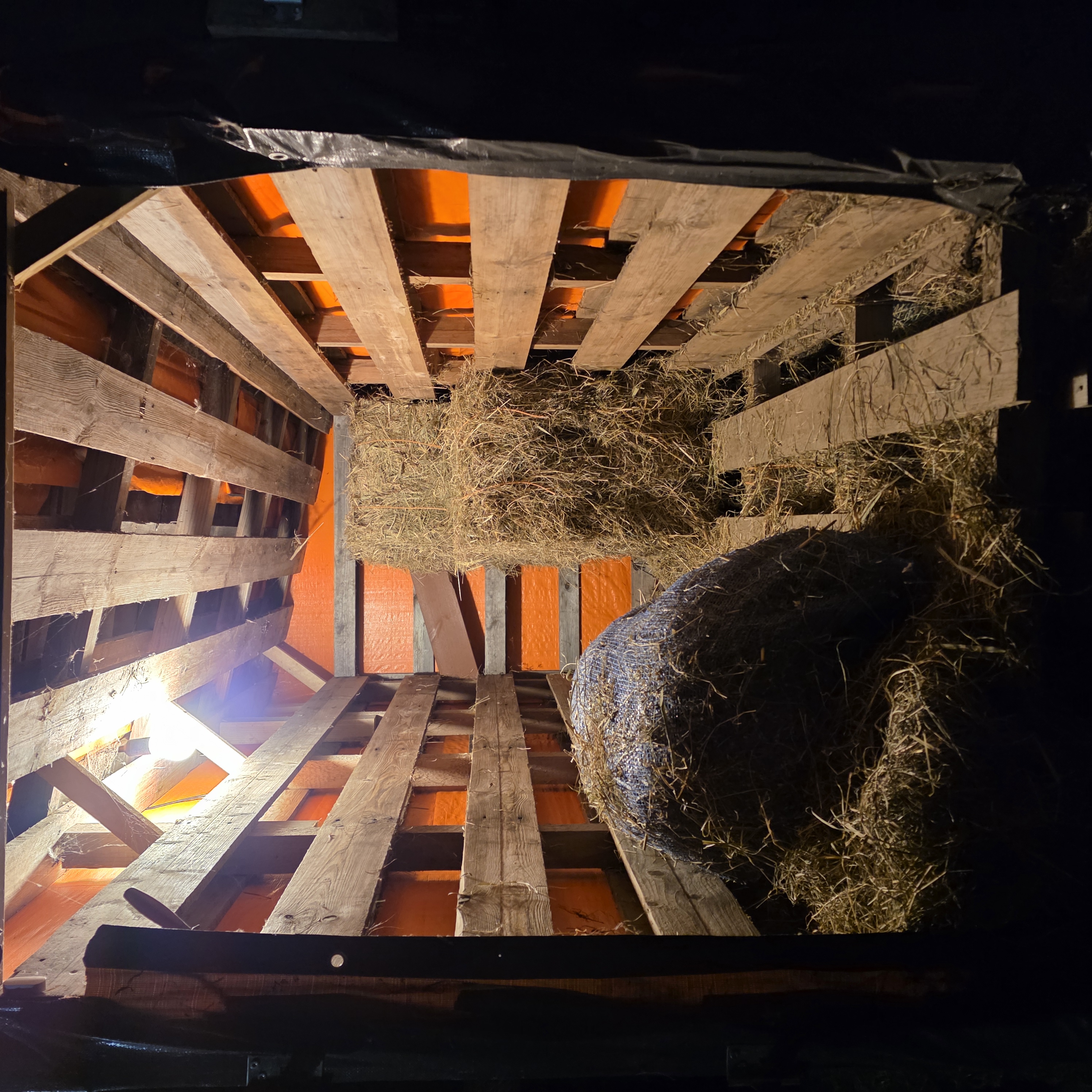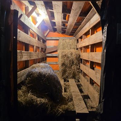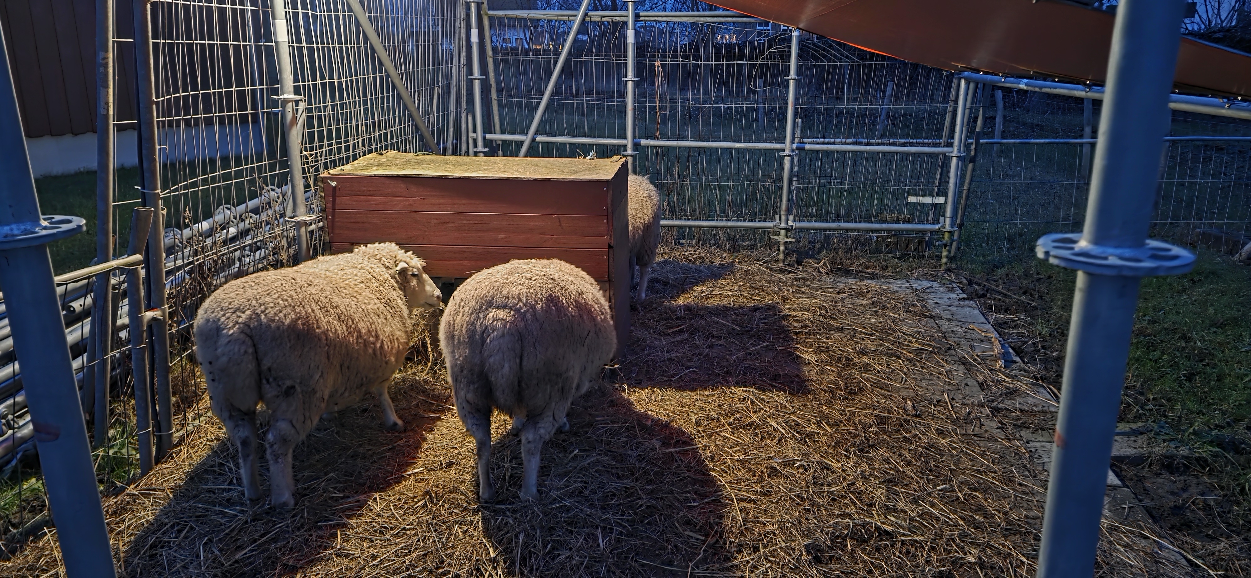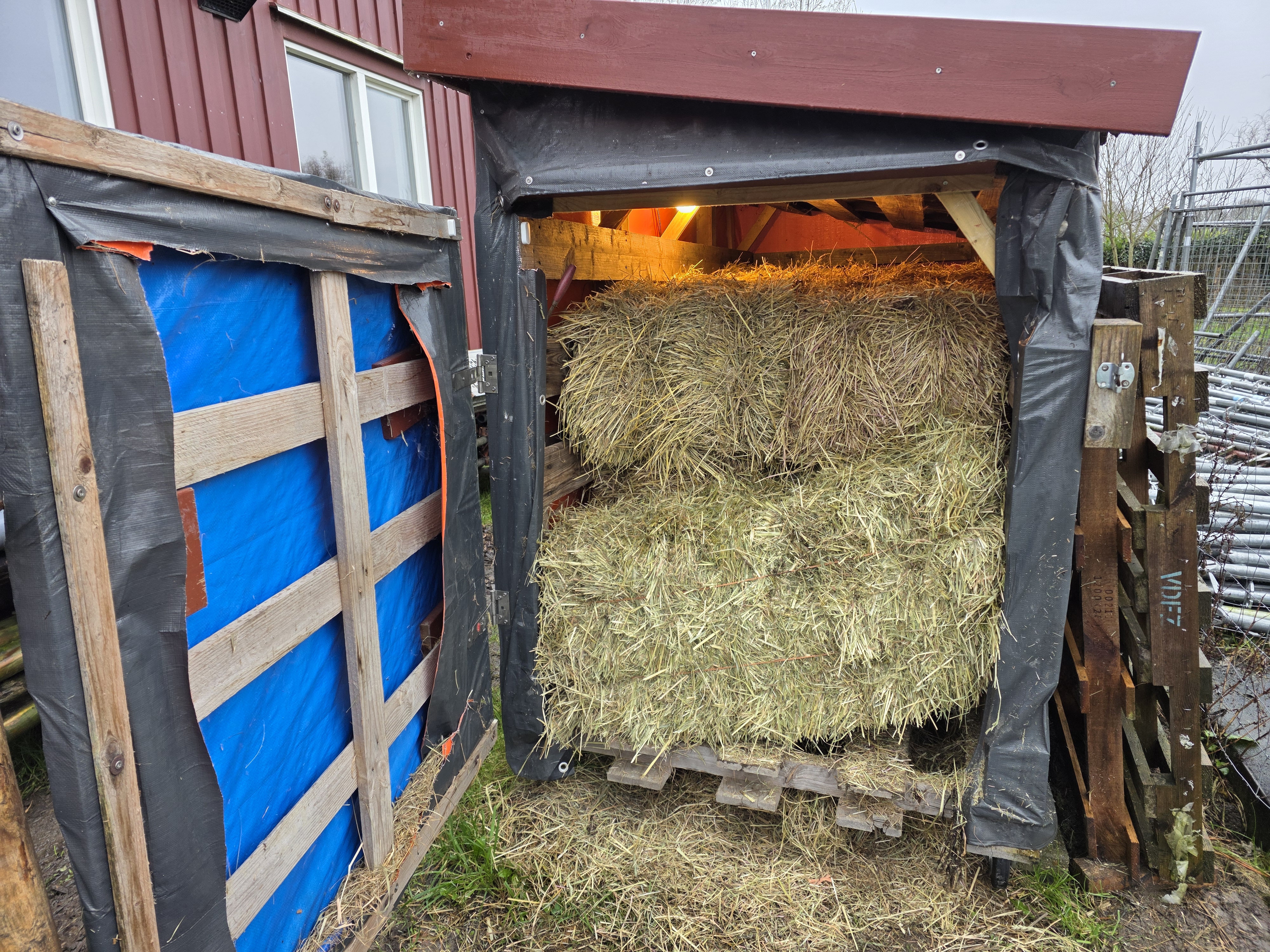 After work, I picked up DW, and we went home. At home, I gave the sheep hay and enjoyed the new light in the temporary hay shed. If you look closely, you can see the sensor in the upper left corner of the picture. It was almost cosy in there. Much nicer than picking up hay in the dark. Now that the door cannot accidentally lock you up, it is also much nicer. I am so happy with this improvement of the temporary hay shed.