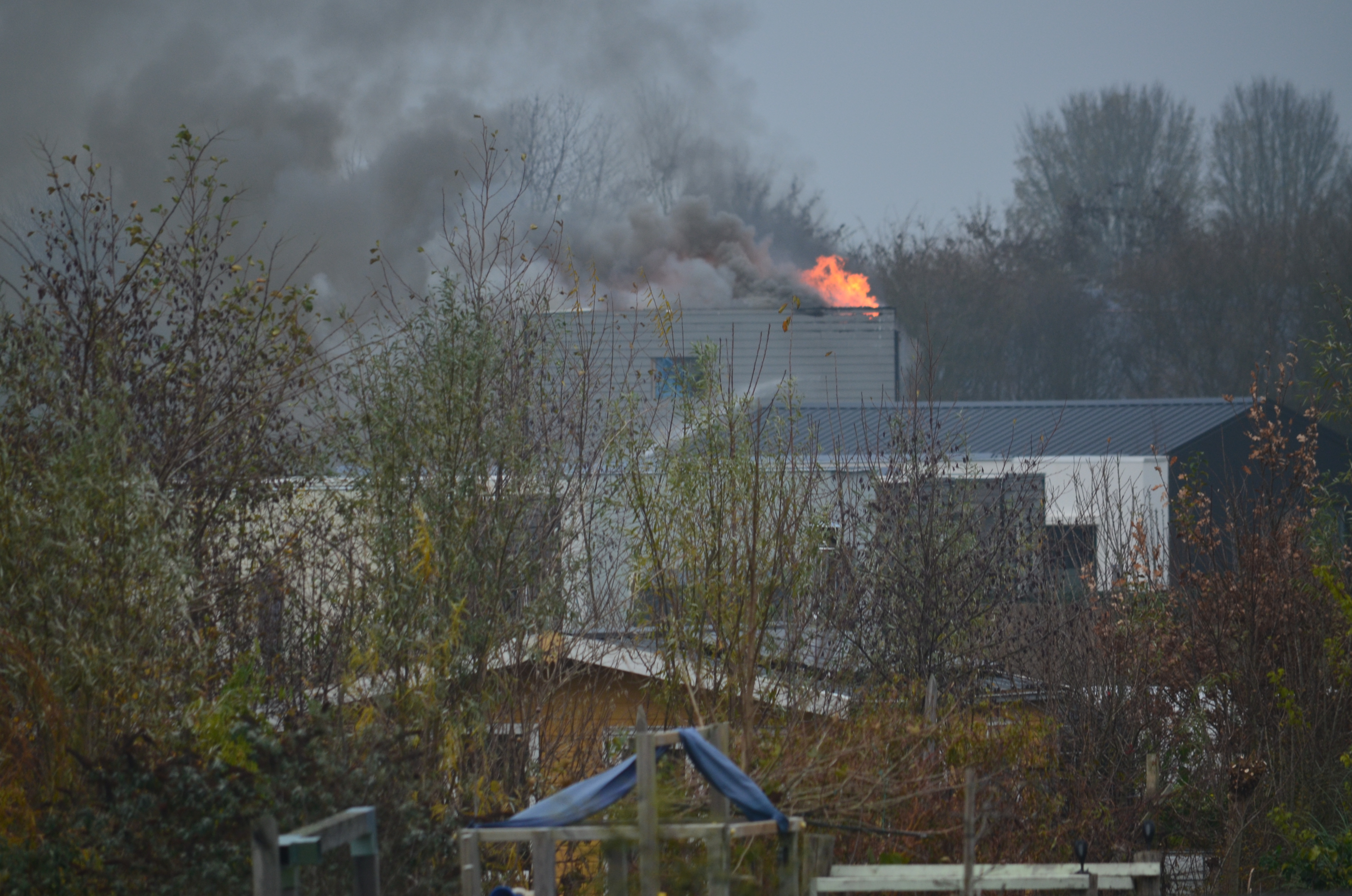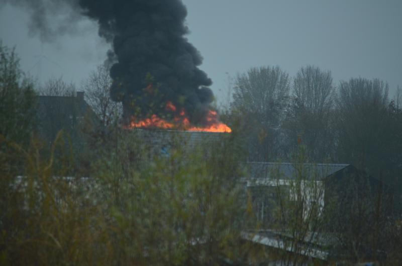 The fire started at 1:45 PM. There came five firetrucks, several additional personnel in regular buses, and three police cars. No medical emergency vehicles arrived.