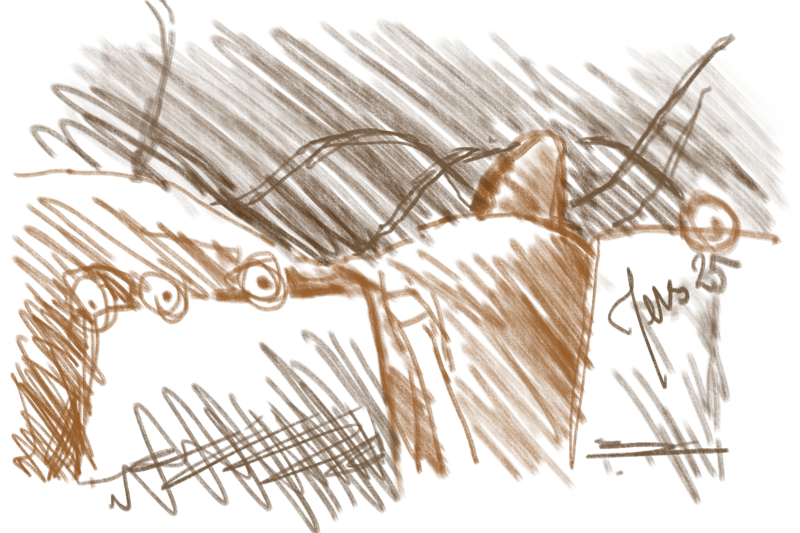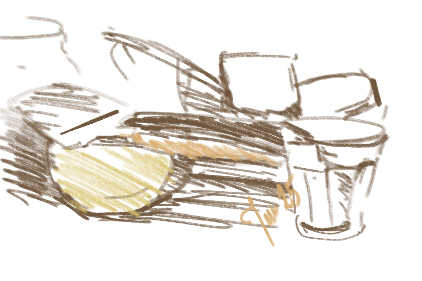 During lunch, I had time to doodle. I will continue to develop my doodle skills and make drawings from time to time. This is an unexpected result of the new phone. It has a pen, and since I got all the drawing tools with me, I can also use them in an off moment. That feels much better than surfing. Doodling can also be done while socialising with other people. It is a little like knitting.