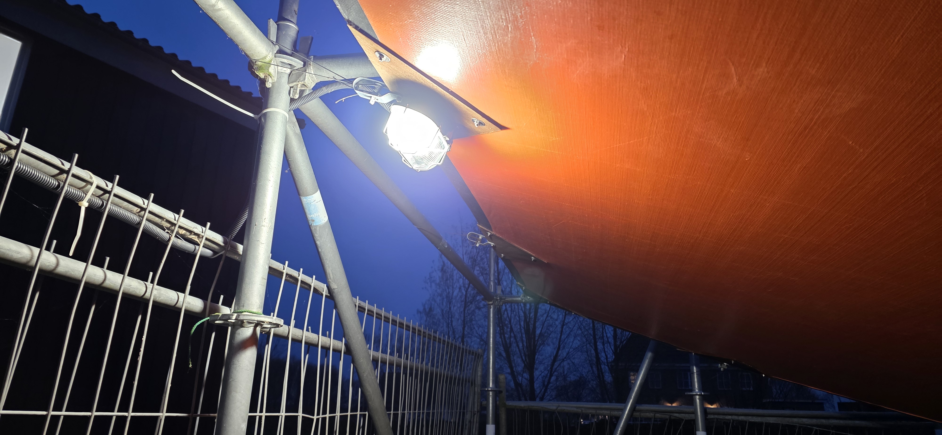 This has been an eventful week. In general, this was a week of light installations. We installed a motion-activated lamp at the canopy of the barn, a lamp in the temporary hay shed, a lamp under the rain roof, and lamps in the bathroom on the first floor. Today, DW ordered lamps for the hall on the ground floor. The electricity in the guest room has been moved, so we are ready to install the bed. A neighbor's house had a fire.