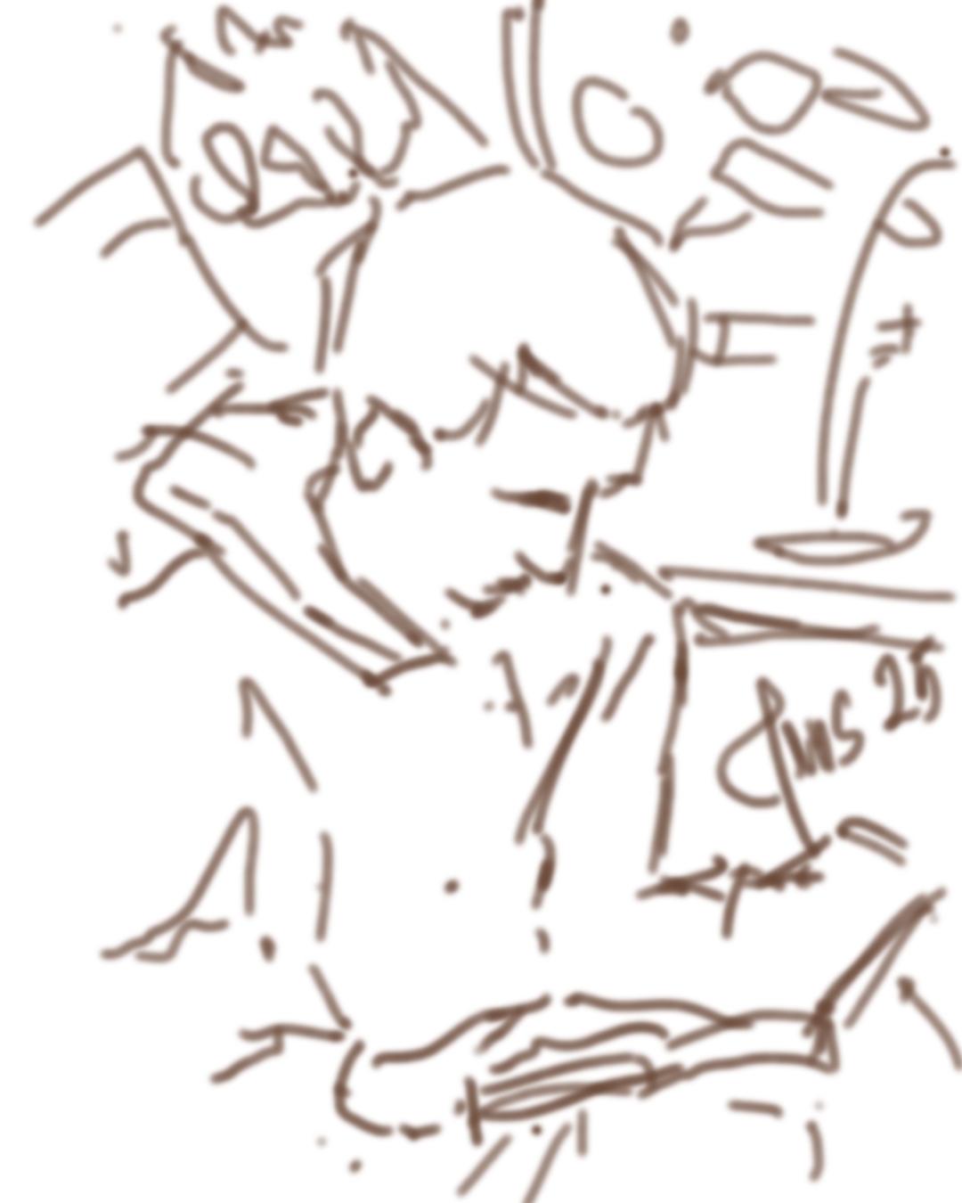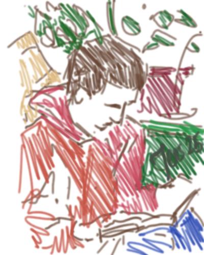 We had a pizza evening, and DS was invited. It was nice! I doodled a little instead of blogging or programming. I drew DS while he and DW solved kakuro puzzles.