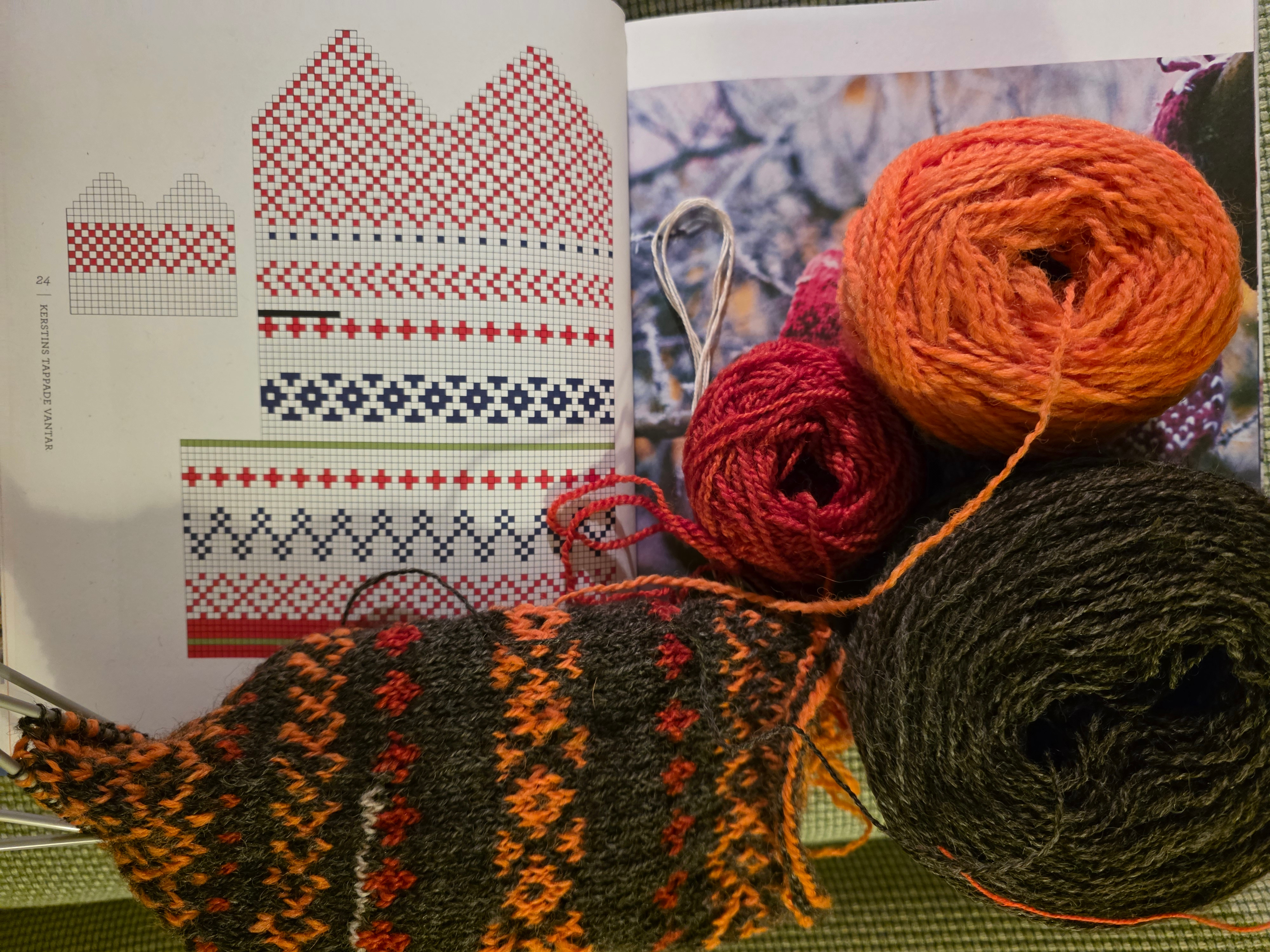 The forecast promised rain today—much rain. DW woke up really early. She went downstairs to knit, and I slept for another 45 minutes. Eventually, I woke up and went downstairs. We had a cup of tea. Usually, we drink a cup of tea while still in bed, but this was also nice. I blogged, and DW kept knitting. She is working on making gloves right now. She used to have her own blog, but she stopped blogging. Some stories could have been told, but she puts her energy into the craft itself. Initially, she was the one who inspired me to start blogging. I had a website, but it was not lively in any way. It took another ten years before I started blogging regularly.