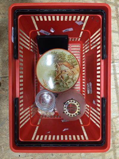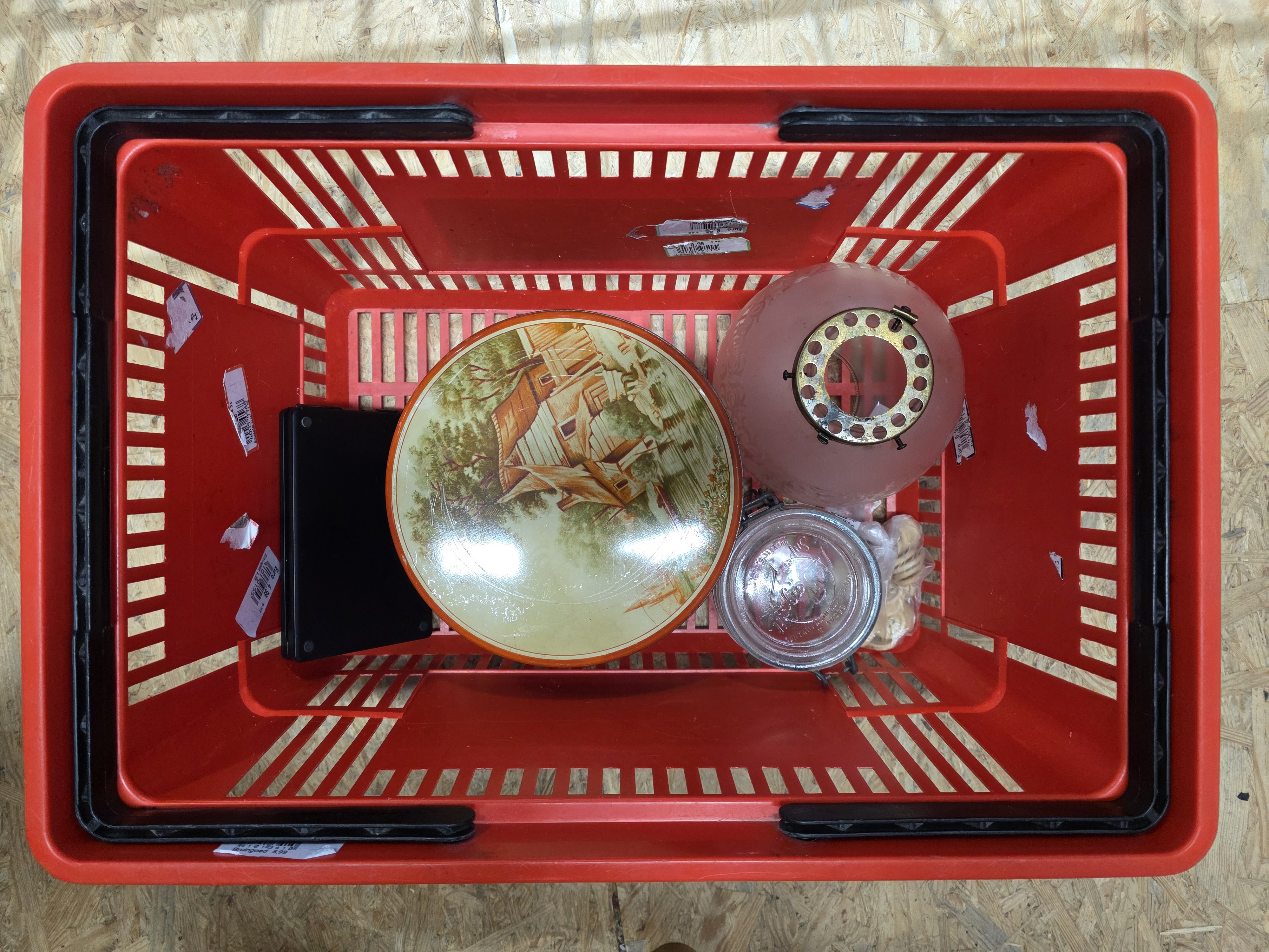 The second-hand shop had no baskets. That was inconvenient. We kept looking for a customer leaving to see if we could get a basket from them. That succeeded eventually.